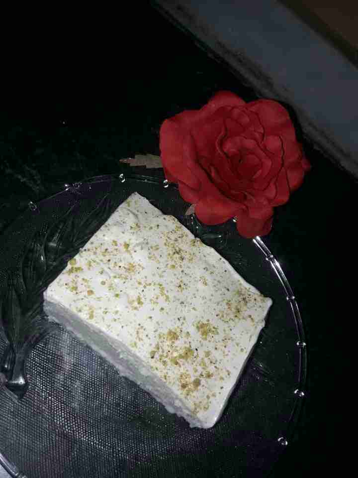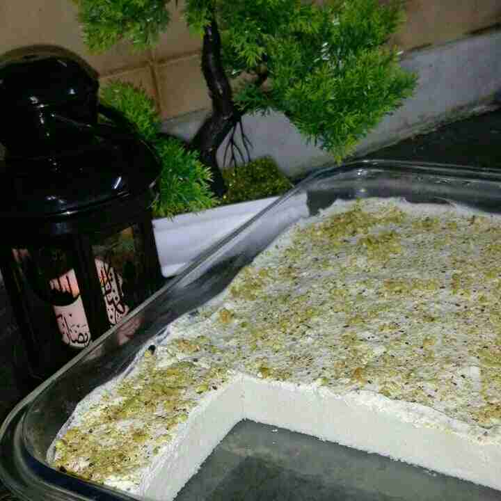 نضع الحليب والسميدوالنشاءوالفانيليا والسكر ونحركهم ثم نضعهم ع النار ونحرك باستمرار ليبدء يتكاثف نضيف ماءالزهر وماء الورد ثم نسكبهم بجاط بايركس ونفردهم بهدوء ونغطيهم مباشرة بنايلون غذائي حتى لاتمسك طبقة من فوق ونتركهم ليبردو تماما نضيف القشطة ونمدها فوقهم ونرش الفستق الحلبي عليهاونغطيها بنايلون غذائي ونضعها بالثلاجة لتتماسك تماما ويفضل لثاني يوم نخرجها ونقطعها ونسكب عليها القطر وتقدم والف صحة وهنا