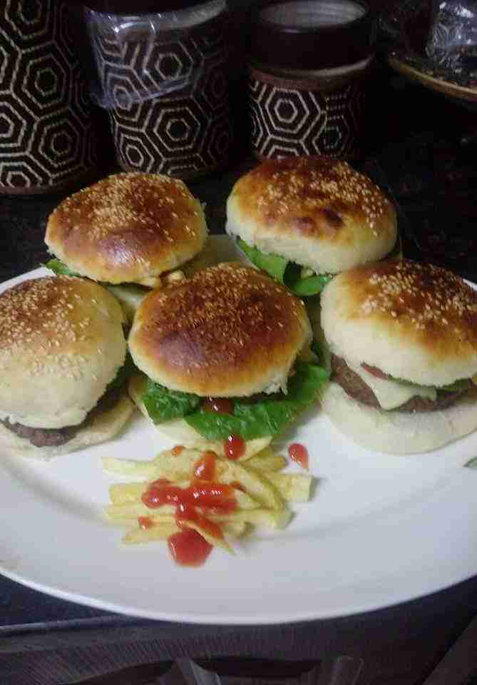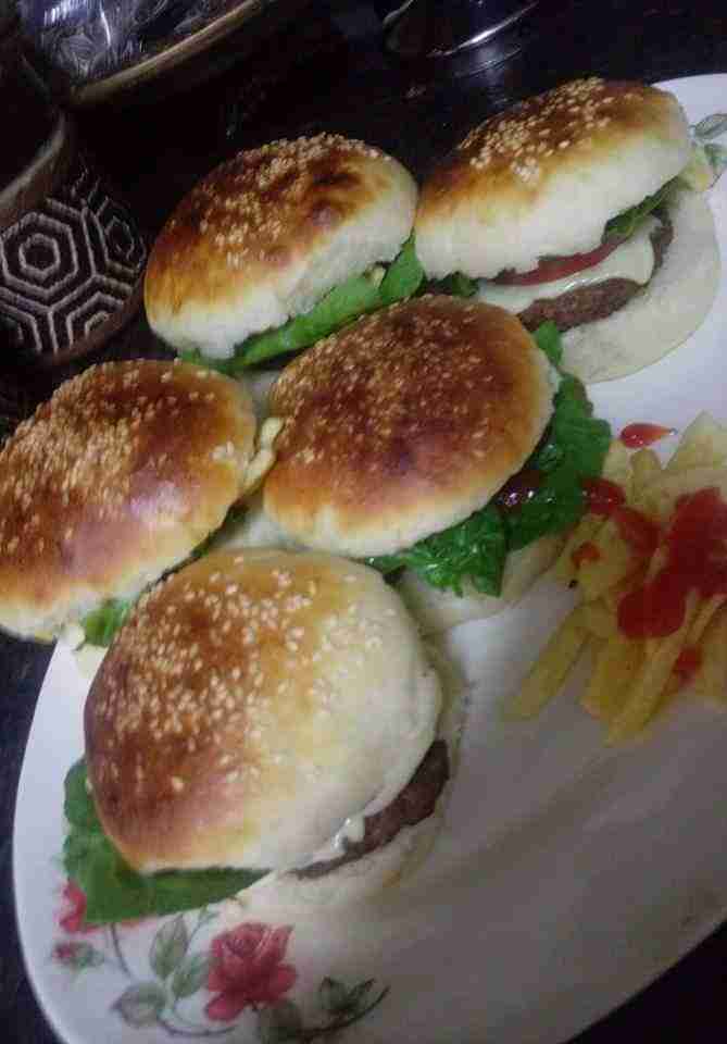 عملت اليوم برغر في البيت وخبز البرغر كمان في البيت