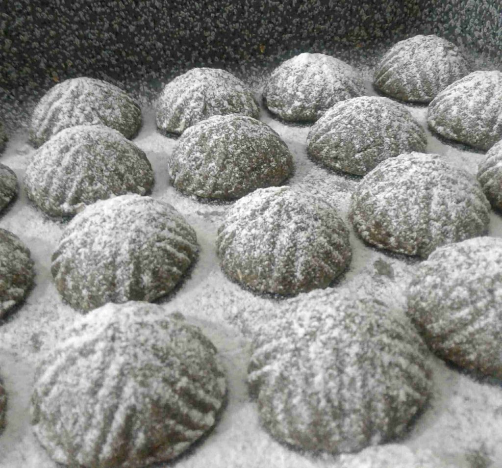 – نشكل المعمول حسب الرغبة، ونخبز على حرارة (١٨٠) مدة ربع ساعة أو حتى تتماسك الحبات وتفوح رائحتها الزكية.