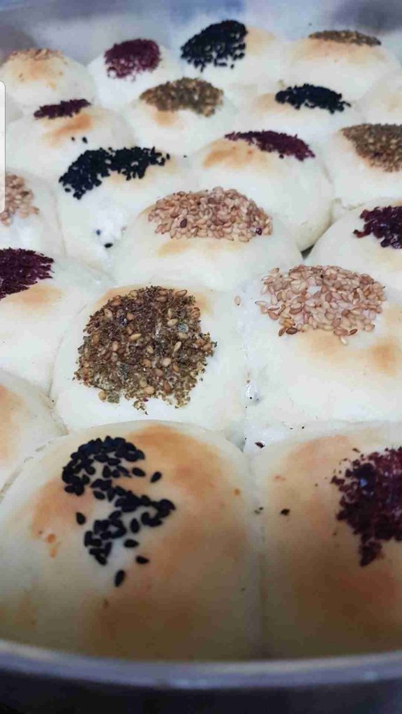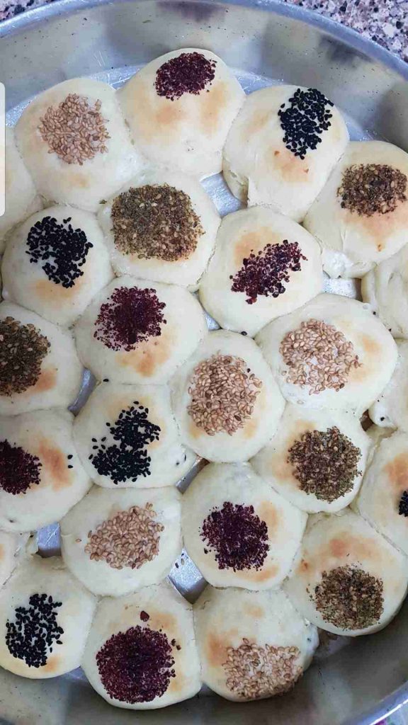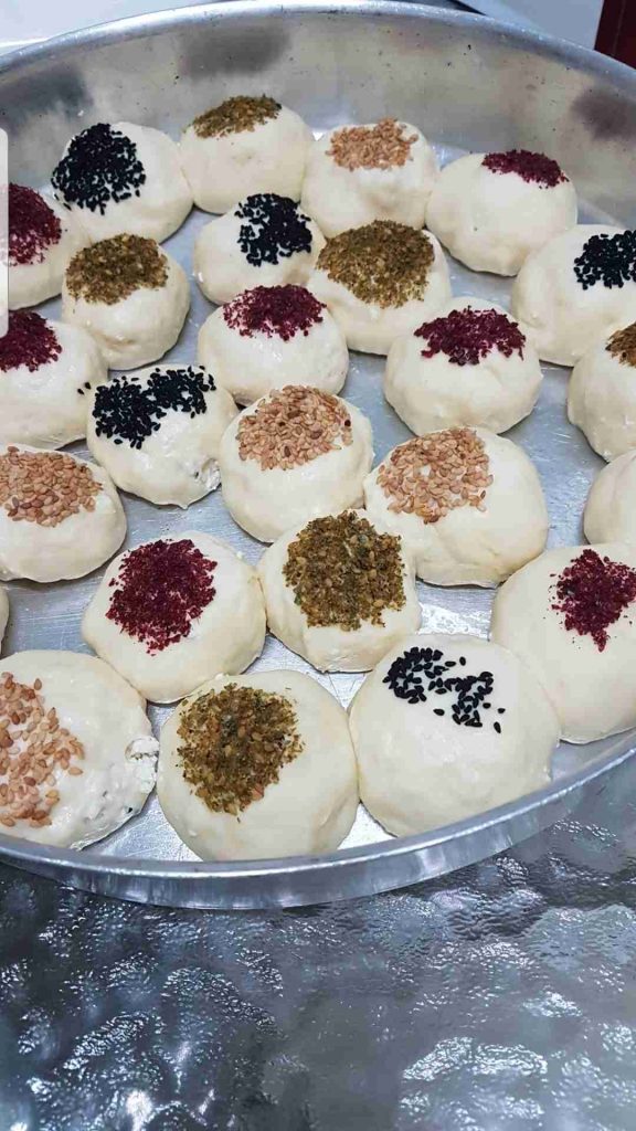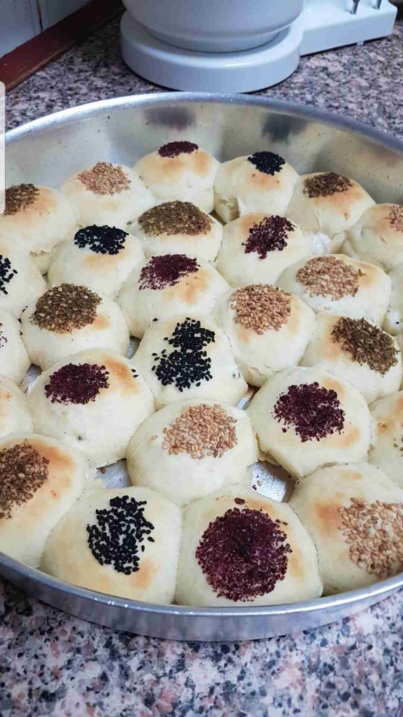بنفرد العجينه وبنحشيها بحشوات متعدده بالزعتر والجبنه والنقانق او اي حشوه بدك اياها وبنزينها بالسمسم والسماق وحبه البركه والزعتر وع الفرن ع درجه حراره ١٨٠