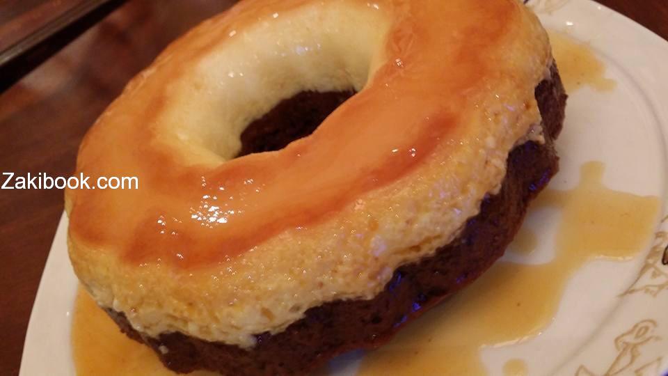 نضع 3بيضات ورشه فانيلا وكاسه سكر و2كوب حليب وربع كوب حليب بودرة نخلطهم منيييييح ونضعهم بالقالب فوق الكراميل