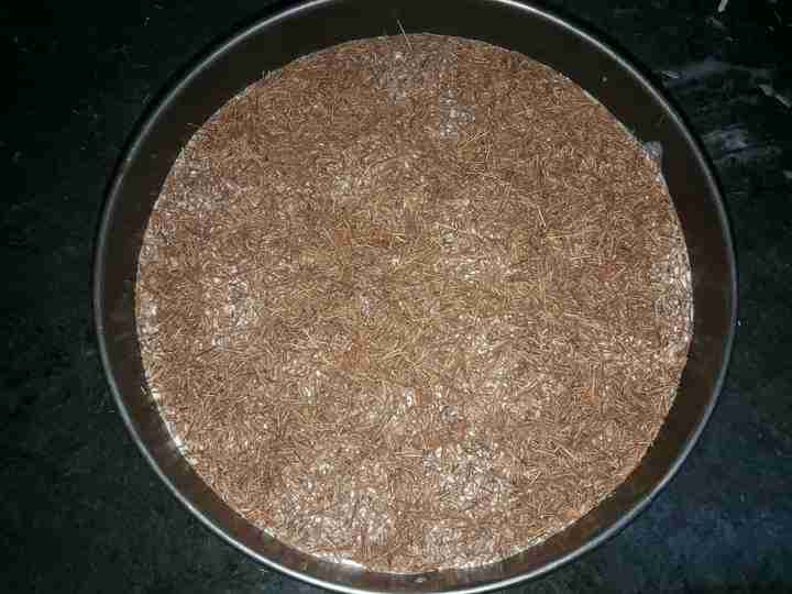 ثم نضع نصف الخليط ليغطيهم ونرش فوقهم الشعيرية لتغطيهم