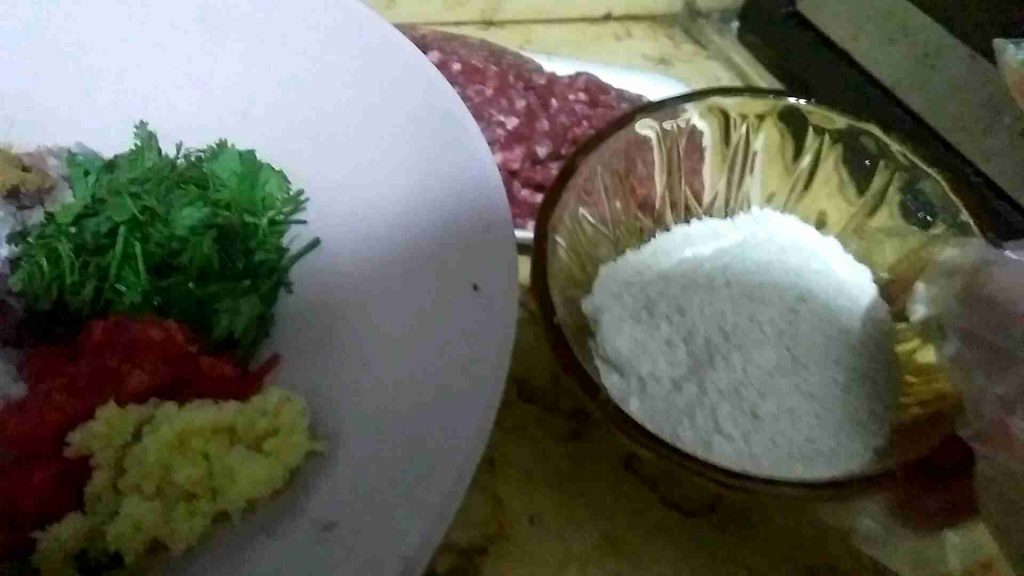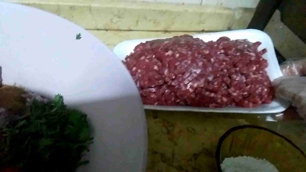 يتم اضافة اللحم المفروم للخليط السابق مع التقليب