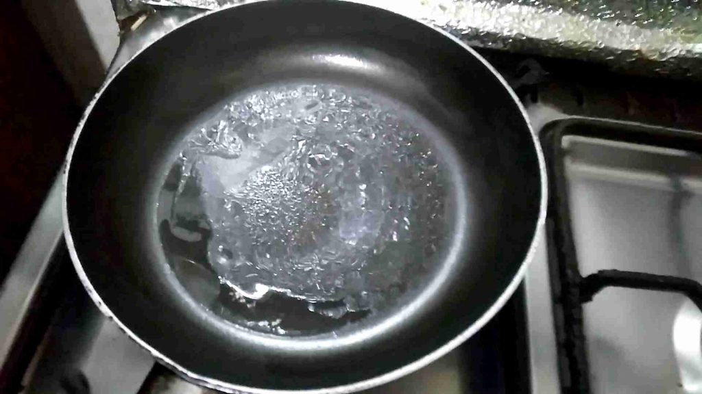 يوضع في الطاسة على نار هادئة حتى ينضج ثم يقلب على الوجه الاخر
