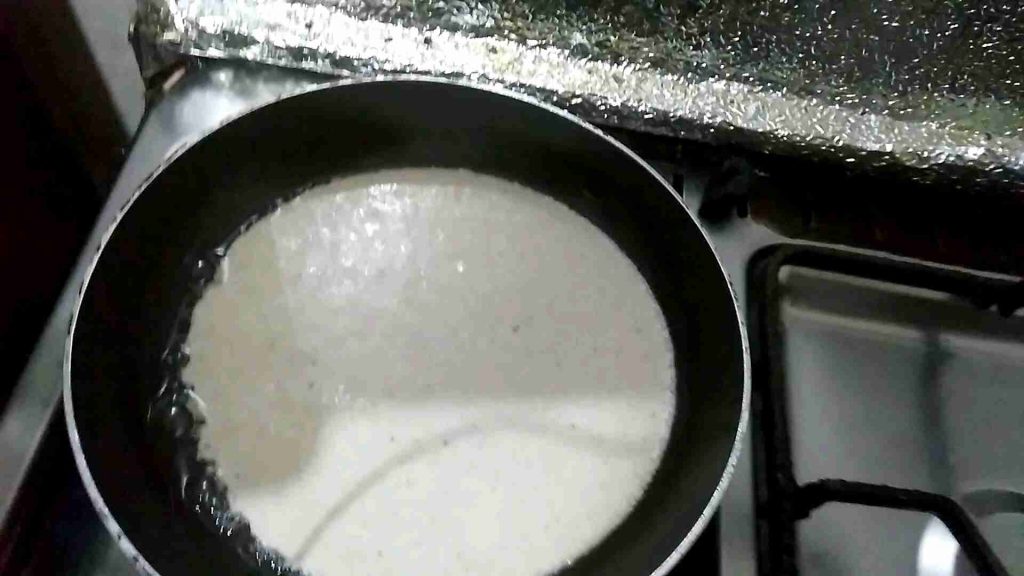 لعمل كريب الشوفان يتم وضع اللبن مع الملح مع التقليب