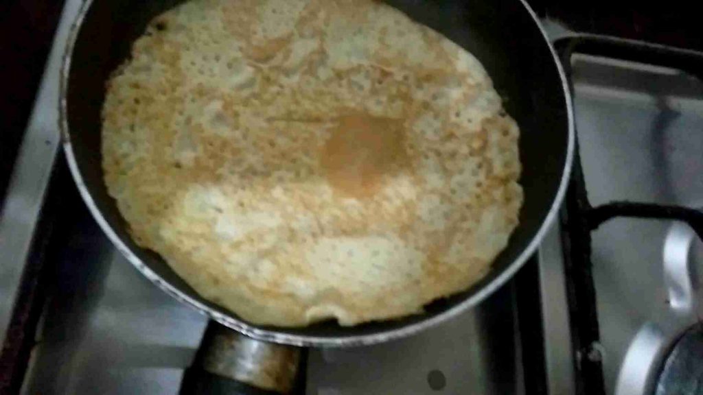 يتم تركها لتنضج ثم تقلب على الوجه الاخر حتى ينضج