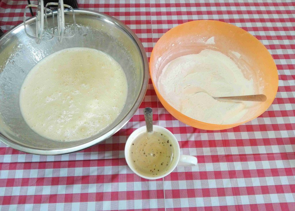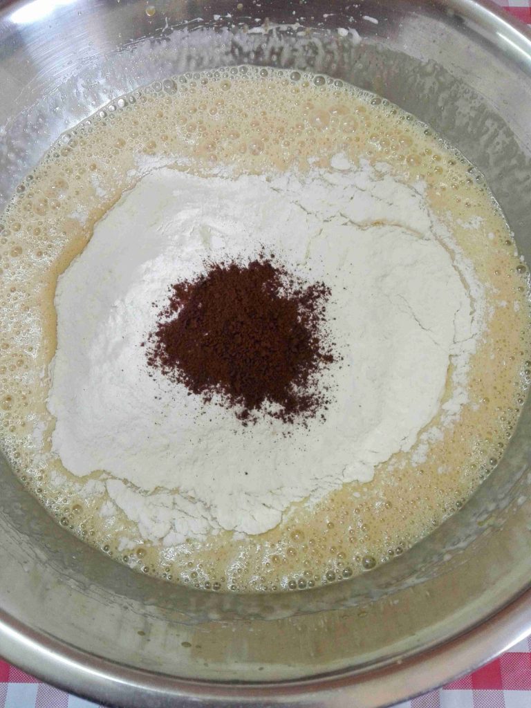 & بنضع البيض (البيض بدرجة حرارة المطبخ )مع الفانيلا والخل وبنخفقهم لحتى يفتح لون البيض بنضع السكر وبنخفقه لحتى يذوب وبنبلش باضافة الزيت عالشكل خيط خلال ما احنا بنخلط ومن ثم بذوب النسكافيه مع الحليب وببلش بالتناوب اضيف الحليب والمواد الجافه ( الطحين وكربونات الصوديم والبكنج ورشة الملح) بنخلهم قبل اضافتهم،، ( انا اضفت معلقة نسكافيه صغيره بدون تذويب بالحليب حبيت اعزز النكهه هالخطوه اختياريه حسب ما بتحبو قوة النكهه) بس يختفي الطحين بوقف خفق وبضع الخليط بالصينيه وبدخلها الفرن المحمى مسبقا عالدرجة حراره 180 عالرف الوسط تقريبا من 35 -40 دقيقه بتحتاج او حسب حرارة الفرن