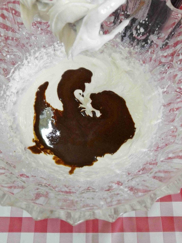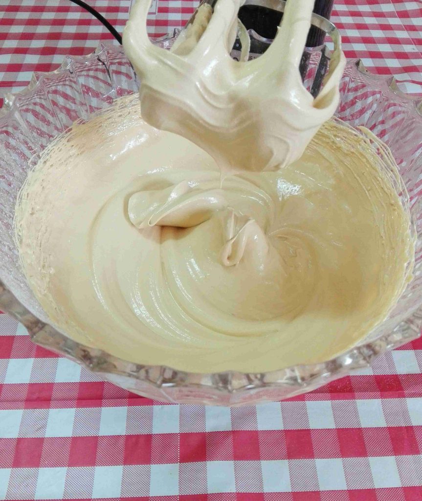 & لعمل كريمة القهوه بنخفق الجبنه مع شوي من الحليب لحتى تصير كريميه بنضيف الكريما والفانيلا والسكر وبخفقهم مزبوط بذوب النسكافيه بمعلقتين من الحليب وبضيفهم للكريما وبضع كمية الحليب المتبقيه ( كمية الحليب المستخدمه كامله نص كوب لا اكثر بناخذ منه لخفق الجبنه ولتذويب النسكافيه ولازم يكون بارد ) وبخفقهم مزبوط لحتى تشد معي الكريما بدخلها الثلاجه لحين وقت التقديم