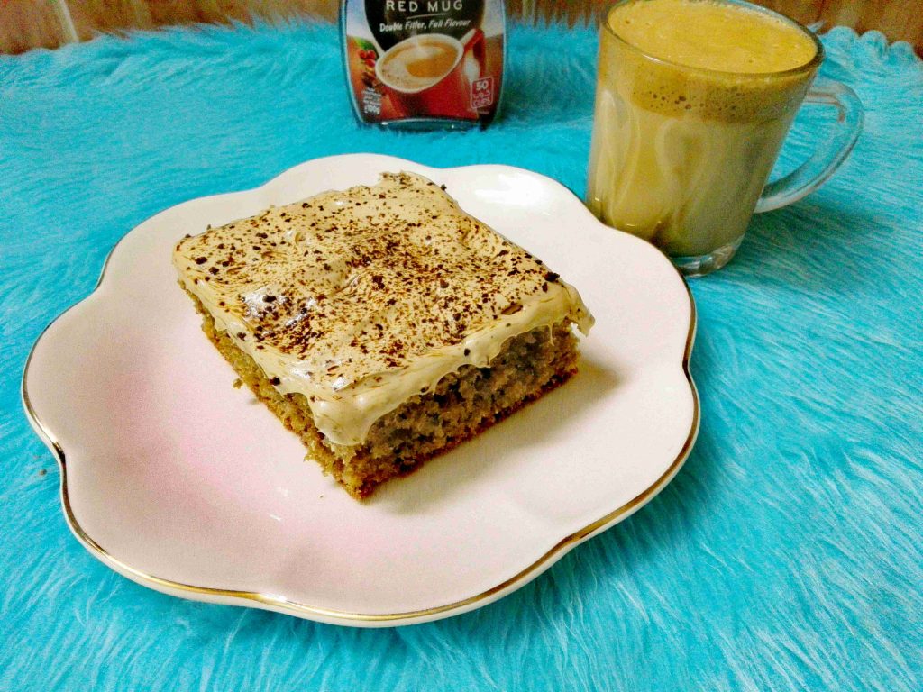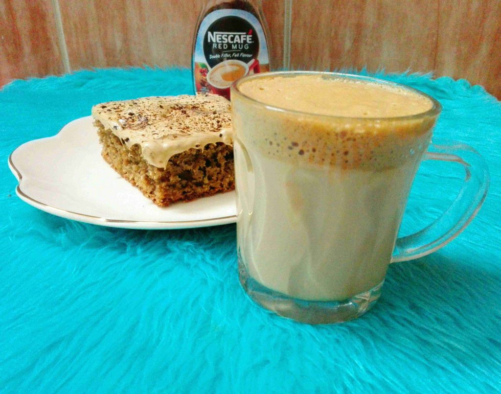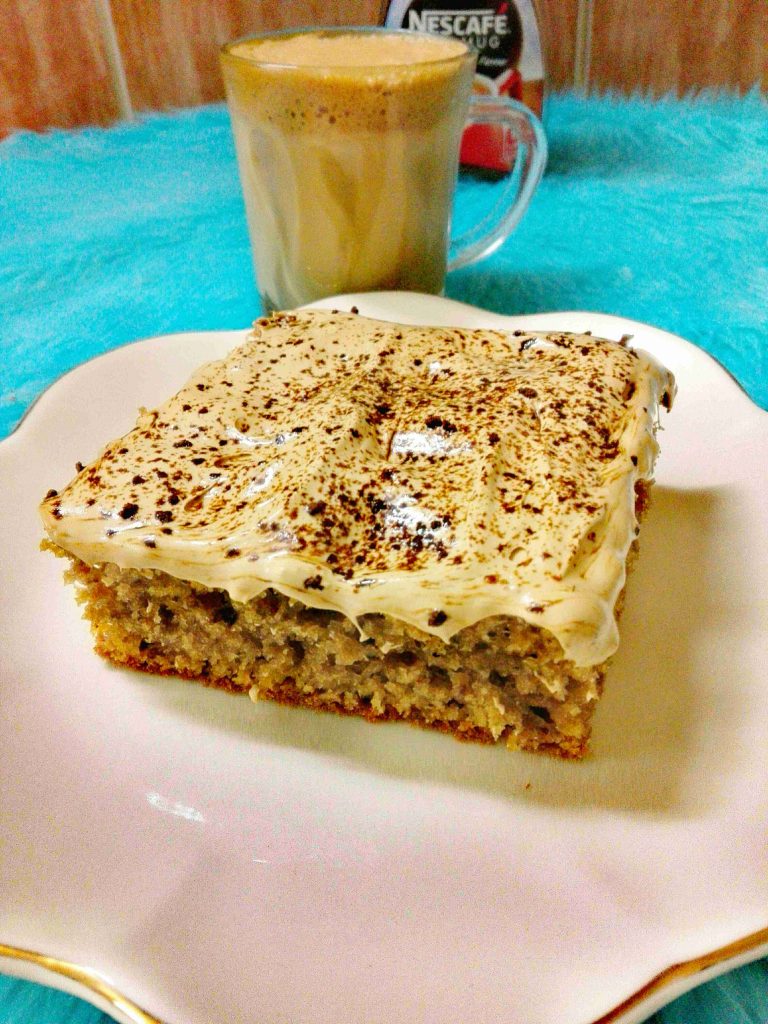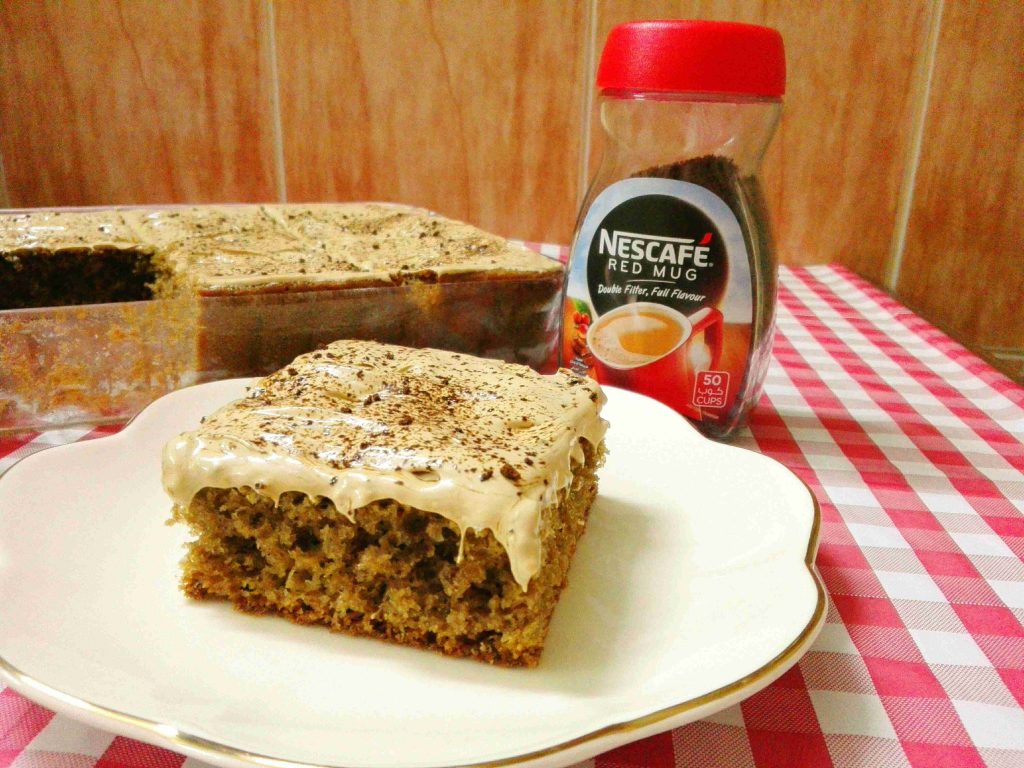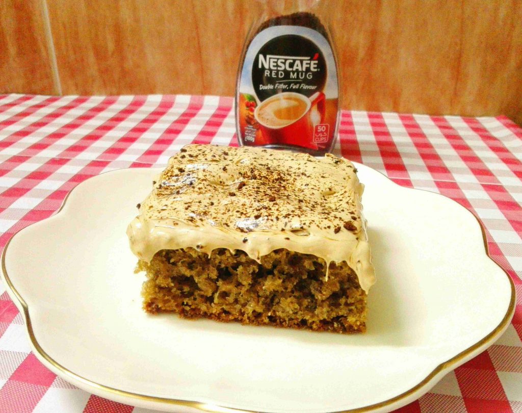 كيكة القهوه المميزه مغطاه بكريمة النسكافيه لمحبي القهوه بطعم لذييييذ