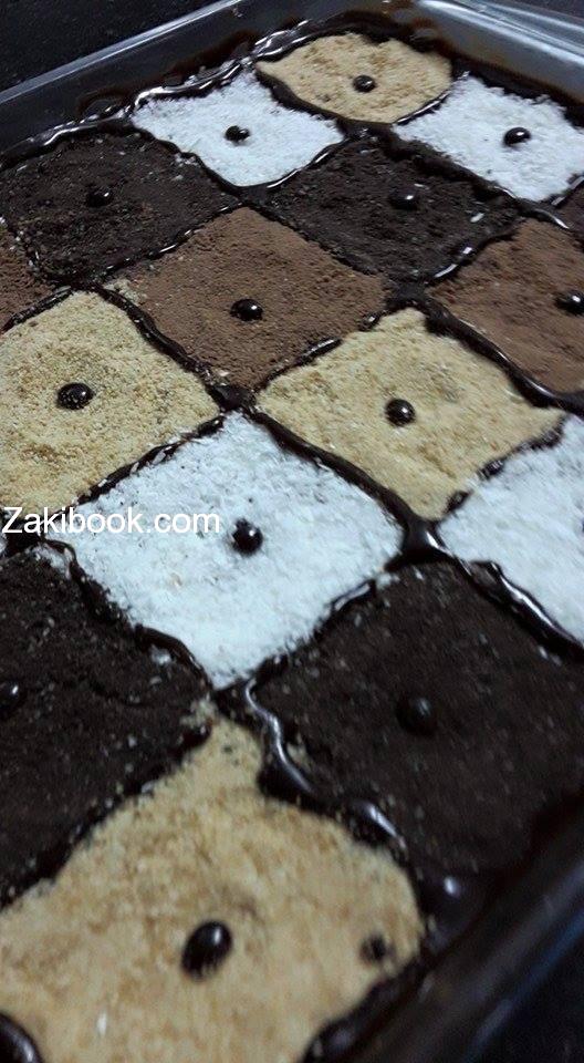 واخر شي حطي طبقة الكريما وزيني بالبسكويت المطحون الابيض والشوكلاتة وبسكويت الاوريو المطحون وجوز الهند واتركيها تبرد بثلاجة وصحتين