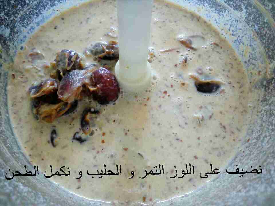 نضيف التمر و الحليب على اللوز و نطحن الكل جيدا.