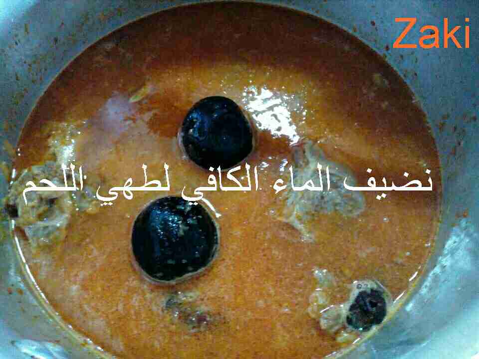 نضيف الماء الكافي لطهي اللحم و نغلق طنجرة الضغظ و بعدما تصفر ننقص النار و نتركها ساعة الا ربع تقريبا حسب حجم قطع اللحم.