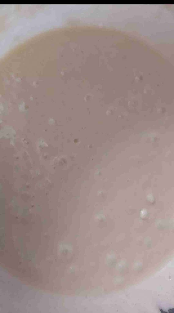 .أخلط الملح والفانيلا والبيكنغ باودر مع الطحين وأضيفه بالتناوب مع كوب العصير الى الخليط مع الخفق المستمر…