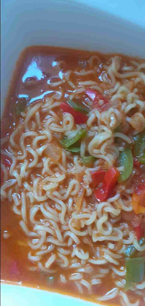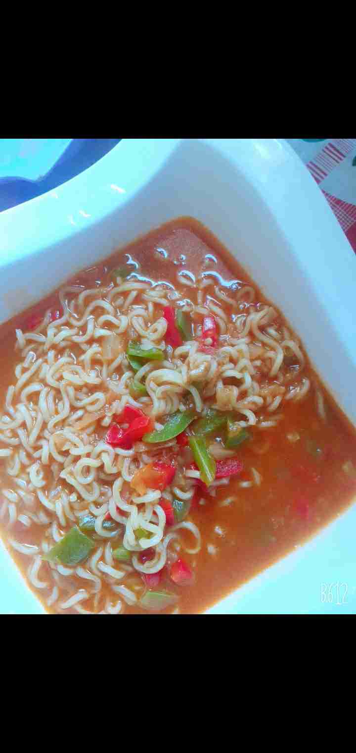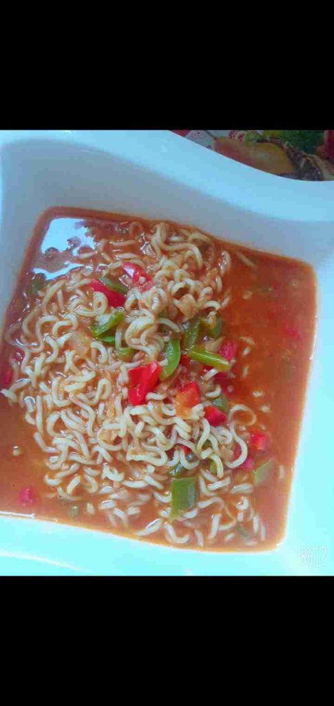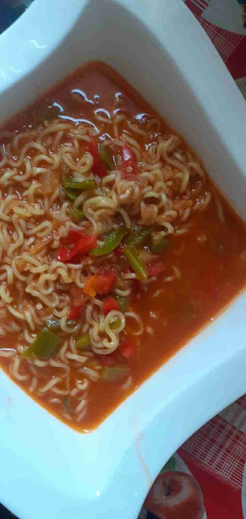 ونقلبهم شوي ونضيف المي ونتركه يغلي ونضيف الصلصة و الاندومي والبهارات المرافقة له ونتركه يستوي والف صحة جربوها جدا طيبة