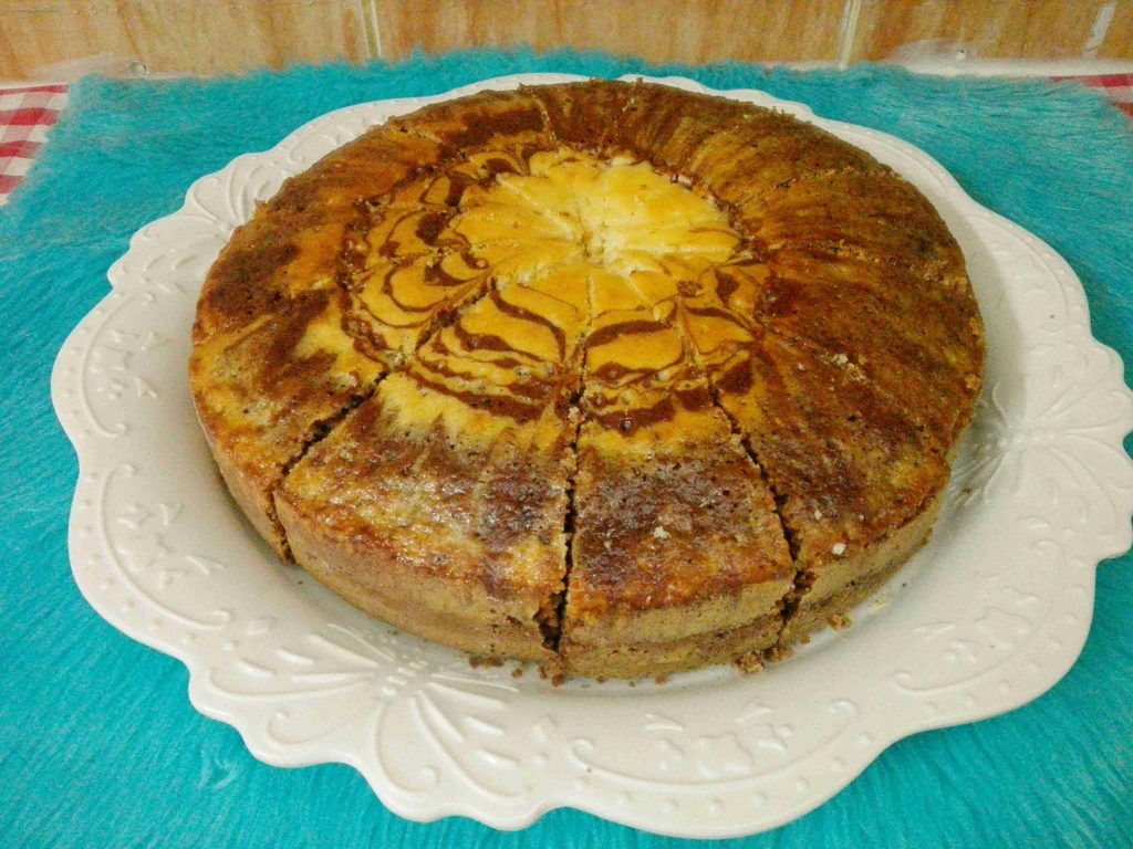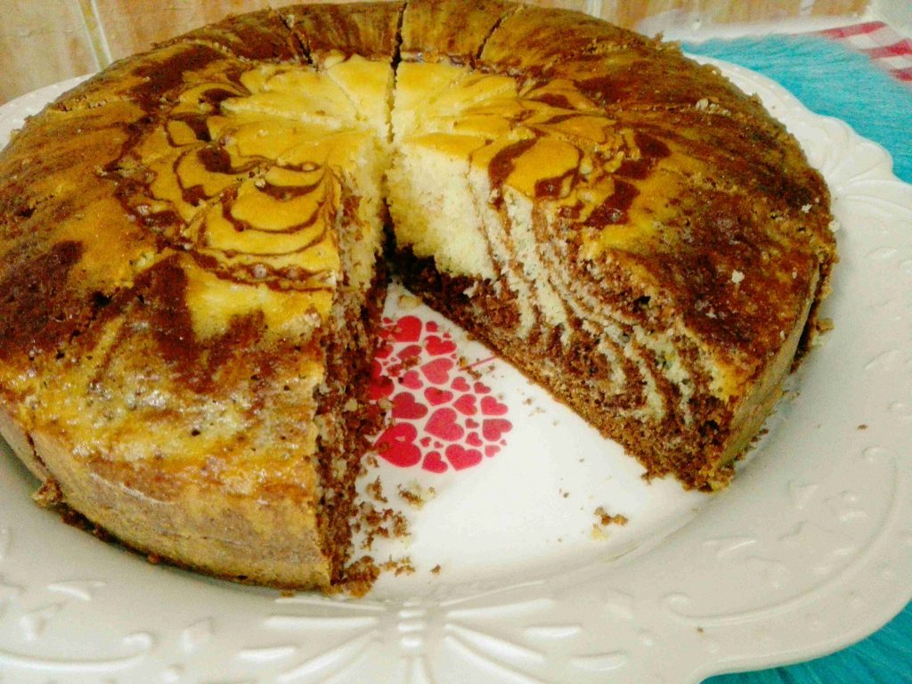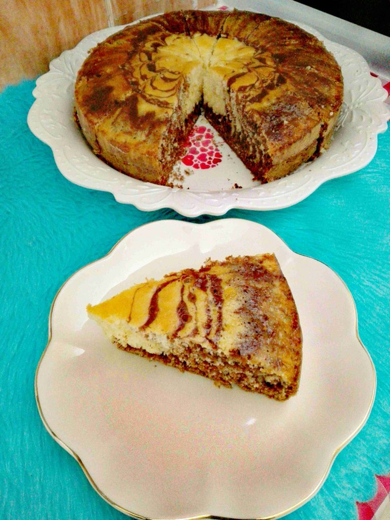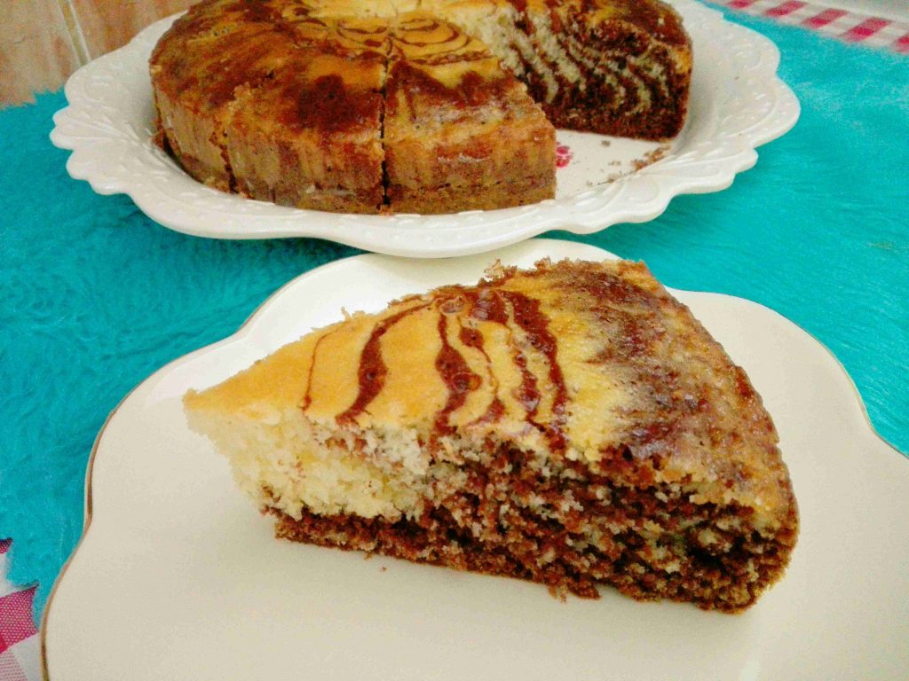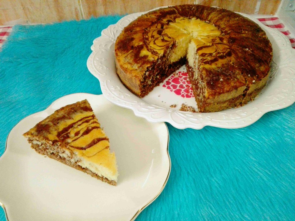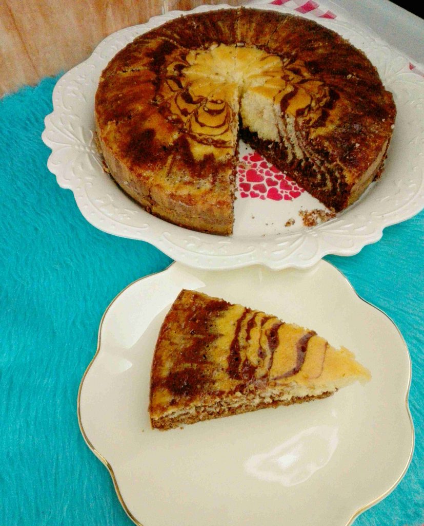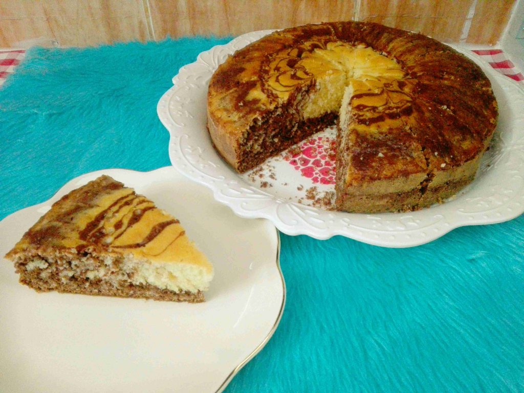 كيك بنكهتين بدون فرن مطهو عالغاز بالملح ملكة الكيك