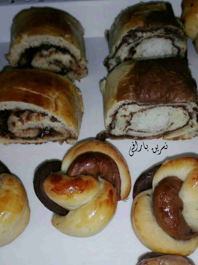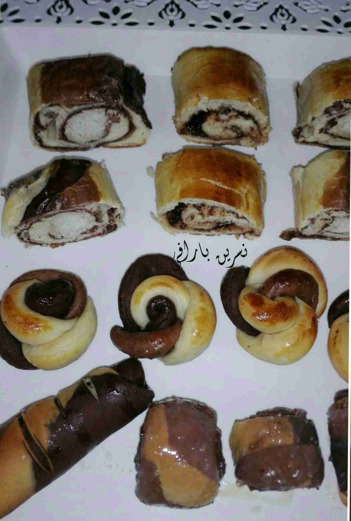 ممكن عمل كرات منها وممكن عمل رول نضع عجينة بيضاء وفوقها عجينة الكاكاو نفردهاونحشيها ونلفها وممكن نفرد عجينة ونحشيها نوتيلا ونلفها وممكن نحشيها بكاس بجوز هند مخلوط مع ملعقة صغيرةسكر وملعقتين كبيرتين قطر نحركهم ونحشي فيهم وممكن عمل وردات