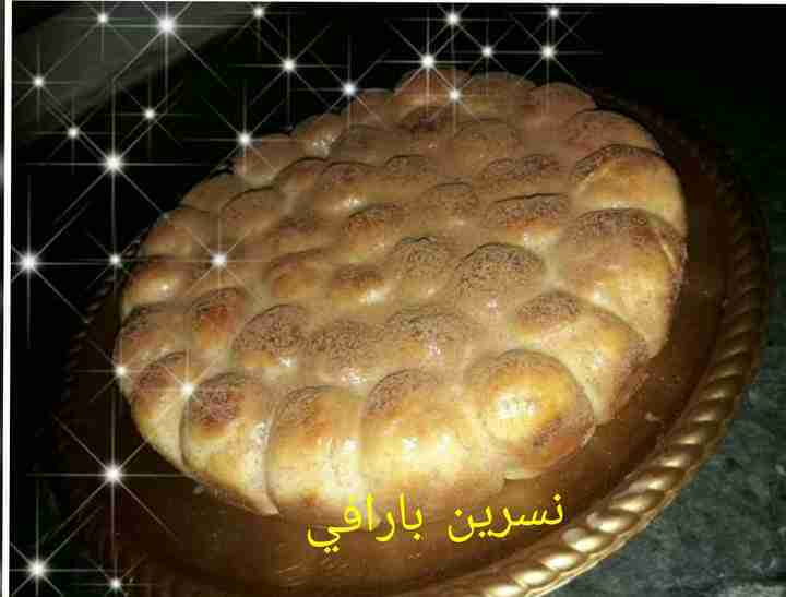 نأخذ من العجينة قطع صغيرة ونكورها ونضعها بصينية تيفال ونضعهم جنب بعض ونضعهم بفرن محمى مسبقا ع حرارة ١٨٠ مدة من 20 الى 25 دقيقةمن تحت حسب الفرن عنا ثم نطفي ونشعل من فوق شوي لتاخد لون ونطلعها بسرعة نسكب عليها حليب مكثف ونرش قرفة مطحونة ونغطيها ونتركها لتبرد شوي ونقطعها ونقدمها والف صحة وهنا وممكن نحشيها جوز هند أو أي نوع مكسرات