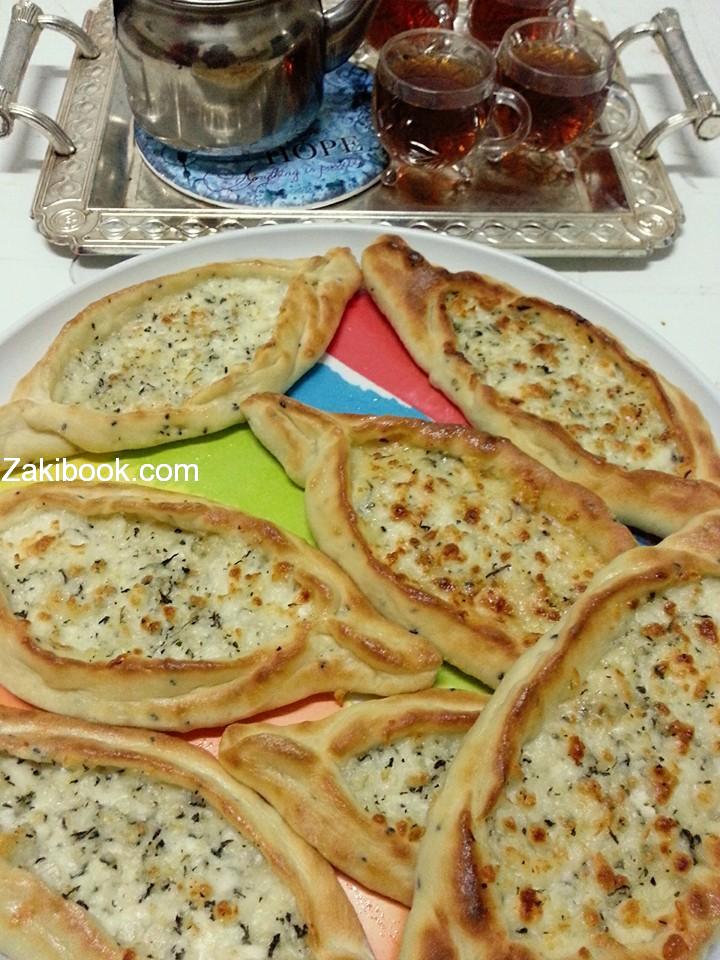بنعجنهم كلهم بمي دافيه لحتى تتماسك العجينه وﻻ تلزق باليد نتركها تتخمر نبدأ برقها نضع طحين على اﻻرضيه واعمليها على شكل بضوي وضعي جبنه بيضه مع جبنه موزاريﻻ ورشه نعنع ناشف واغلقيها من اﻻطراف وعالفرن بدرجه حراره عاليه
