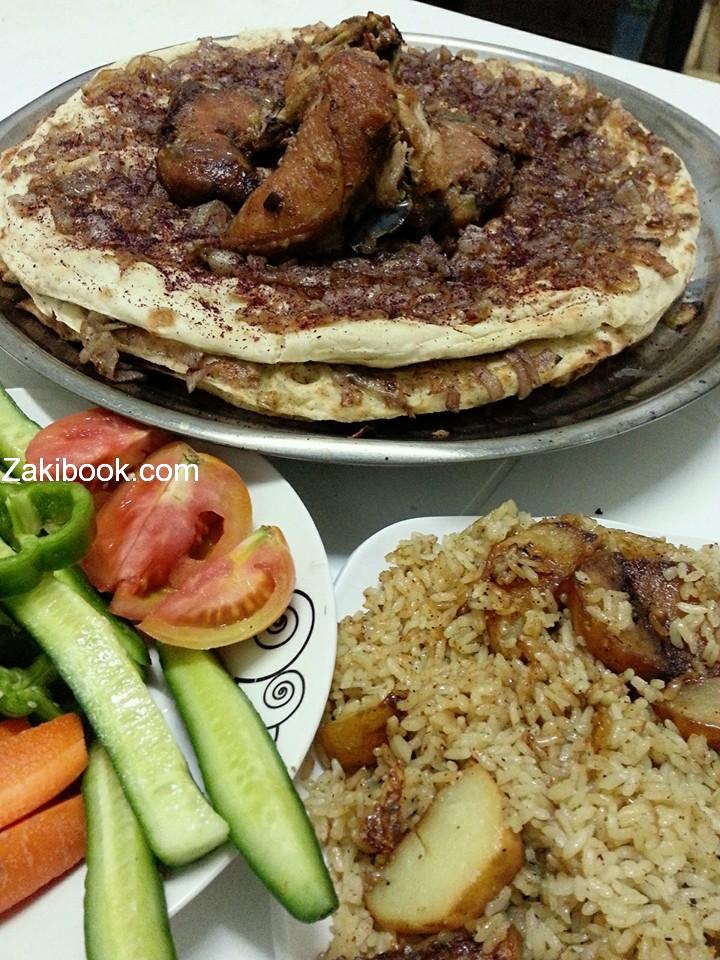 نسلق الدجاج مع ورق الغار والهيل وفي هذه الفتره انحوس البصل مع زيت الزيتون ومعلقه ملح لما يدبل ومعلقه سماق ونضع عليه الدجاج بعد ماقليناه يتشرب نكهه البصل واﻻن نحضر قطعه من الخبز ونغطسه بمرقه الدجاج بس تغطيسه عالسريع واتطلعيها ونفردها بسدر ونضع البصل ورشه سماق ونشويه عالفرن عالخفيف ثم الطبقه الخبز الثانيه نغطسها بالمرقه ونضع البصل ونشويها لحتى تنتهي الكميه