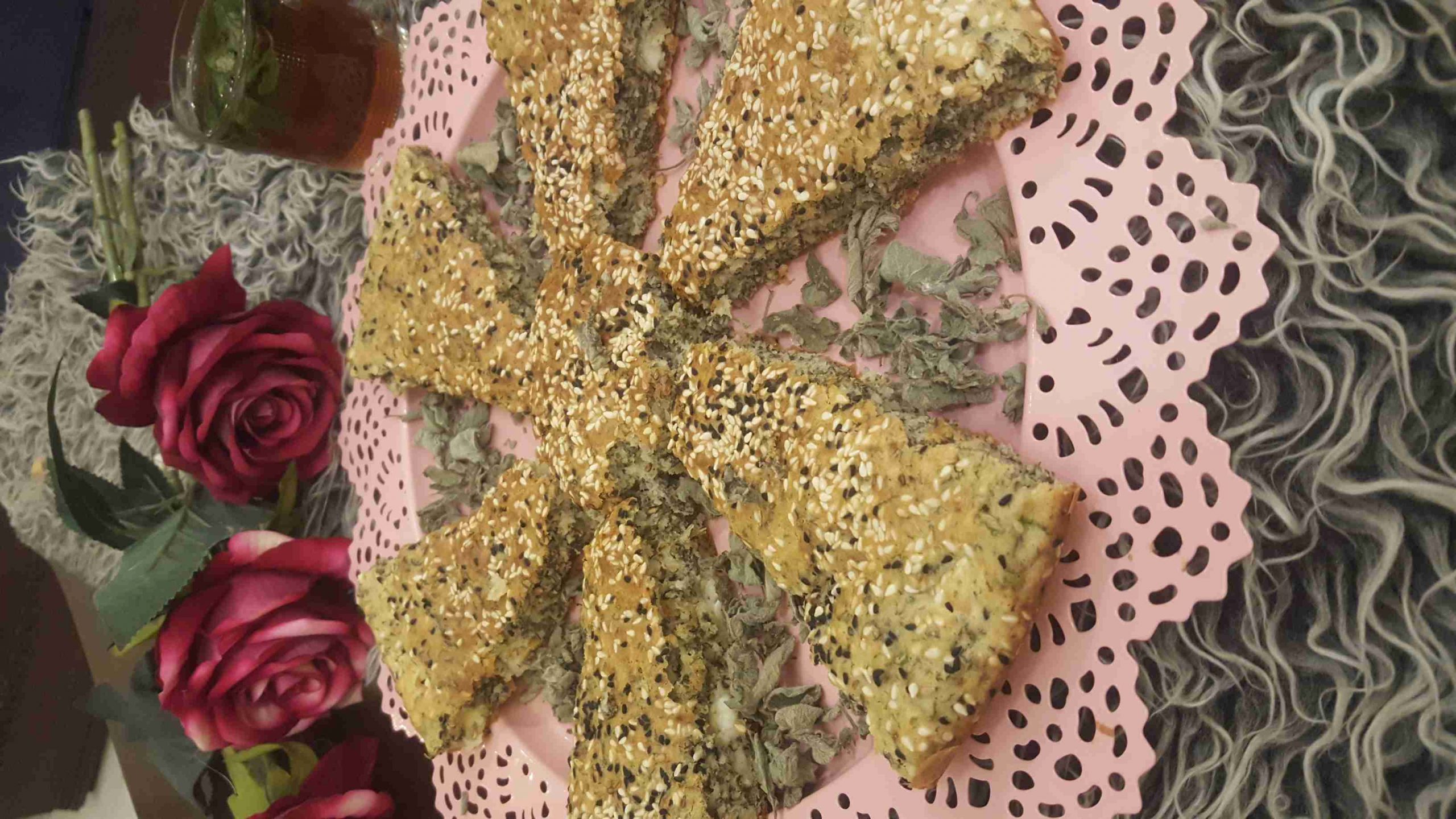 بنخفق البيض والخل جيدا ثم نضيف الزيت واللبن والحليب وبنخفقهم كمان مره بعدين بنضيف الزعتر والجبنه والزيتون والنعنع الناشف واخر شي بنضيف الطحين المنخول مع البيكنج باودر والكربونه وبنقلب تقليب بالمعلقه ليختفي الطحين وبندهن صينيه بالزيت والطحين وبندير الخليط فيه وبنرش على الوجه سمسم وحبه البركه وبنخبزها بفرن حامي ١٨٠ْ لحتى تستوي وبتقطيعها ومع كاسه شاااي وادعولي
