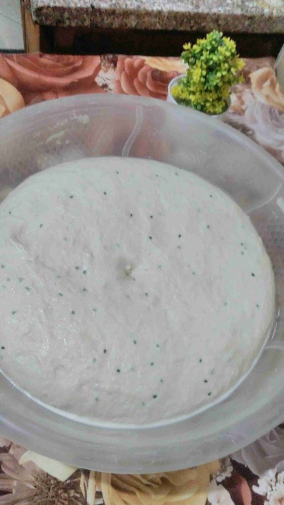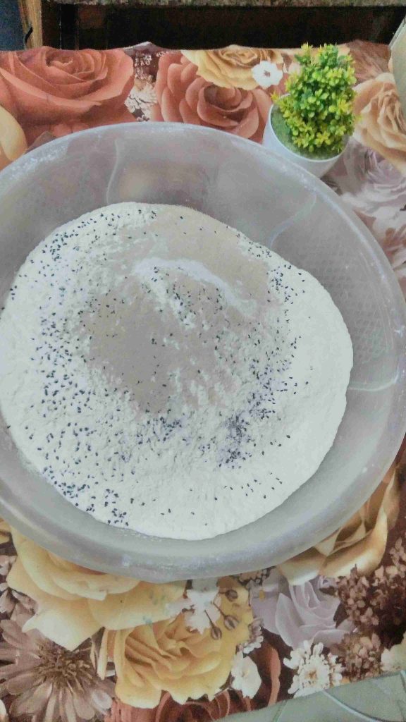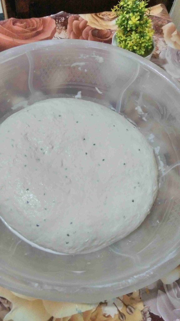 اول شي بنخلط المواد الجافه مع بعض بنضيف الماء بالتدرج وبنبلش نعجن زي اي نوع عجينة