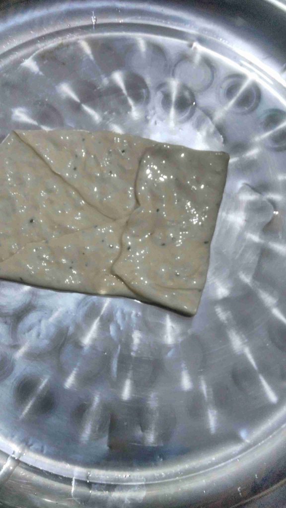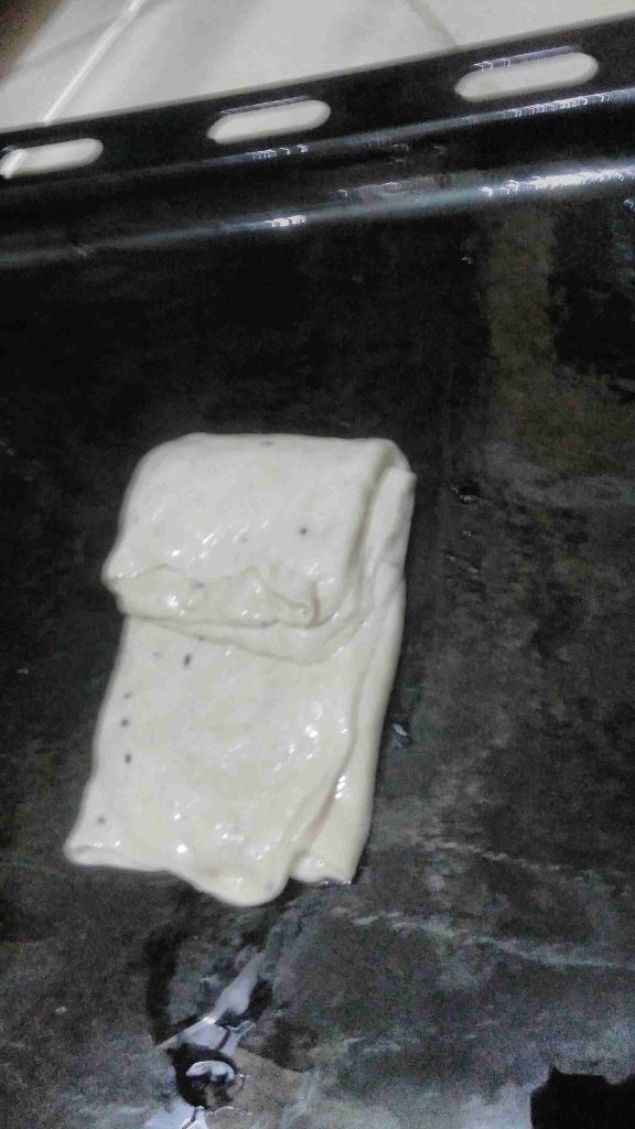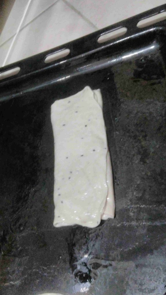 وهيك بكون آخرة مرة حنمدو بصينيه الفرن بس ما نخلي رقيق بتخلي وسط السماكة