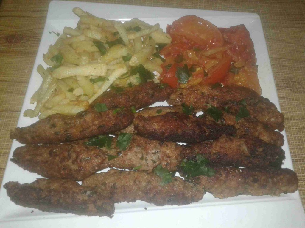 بداية ببفرم اللحمه مع البصل والثوم والليه والفلفل الحار والبقدونس حطيت بقدونس لاني ما بدي اشويها على الناز وبضيف البهارات والملح وبعحنها مزبوط وبشكلها بشكل طولي وبضعها بالصينيه وبضع شرحات البندوره عليها وبضعها علىنار هاديه على الغاز مع قليل من الزيت وبغطيها الى ان تنضج مع المتابعه المستمره وبقوم بتحميرها فقط بالفرن وبقدمها مع المخللات والسلطات او البطاطا المقليه