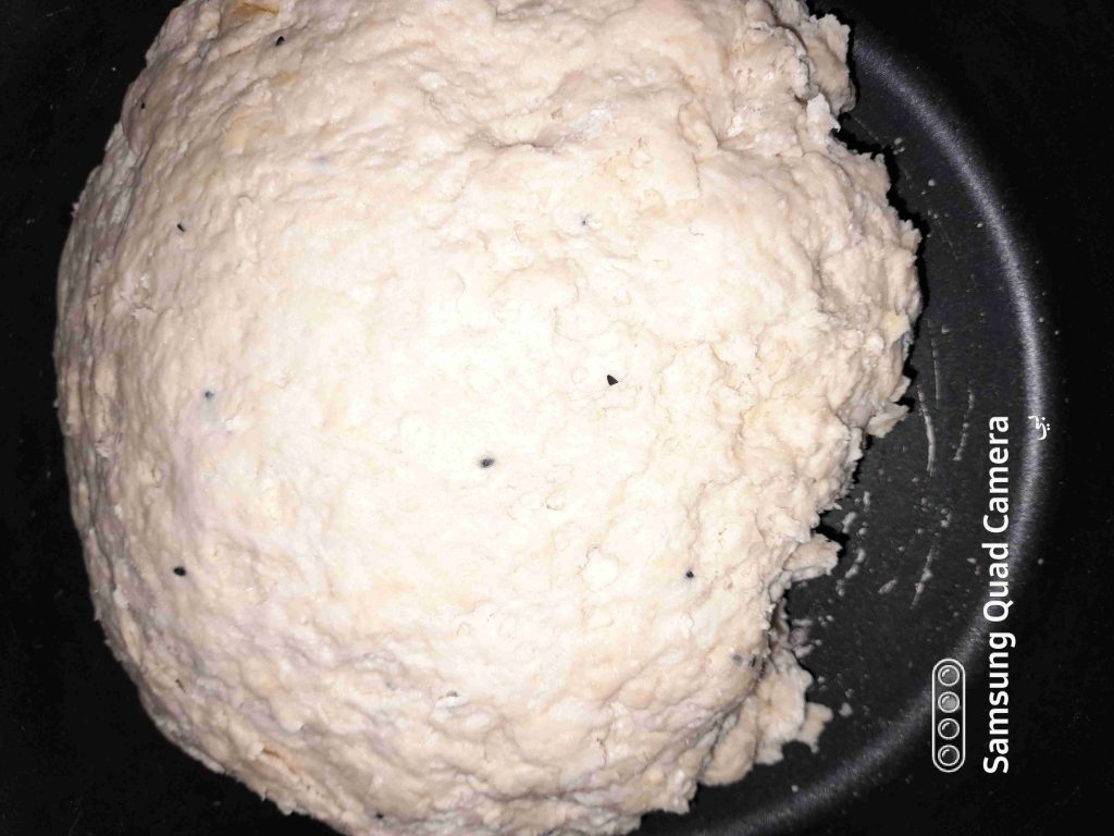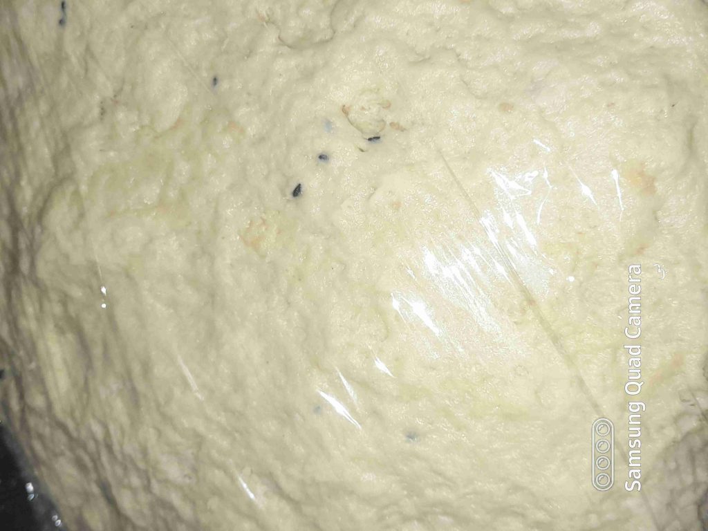 بنغطي العجينة وبنتركها بمحل دافي ساعة كاملة او لحتى نشوف تضاعفت حجمها