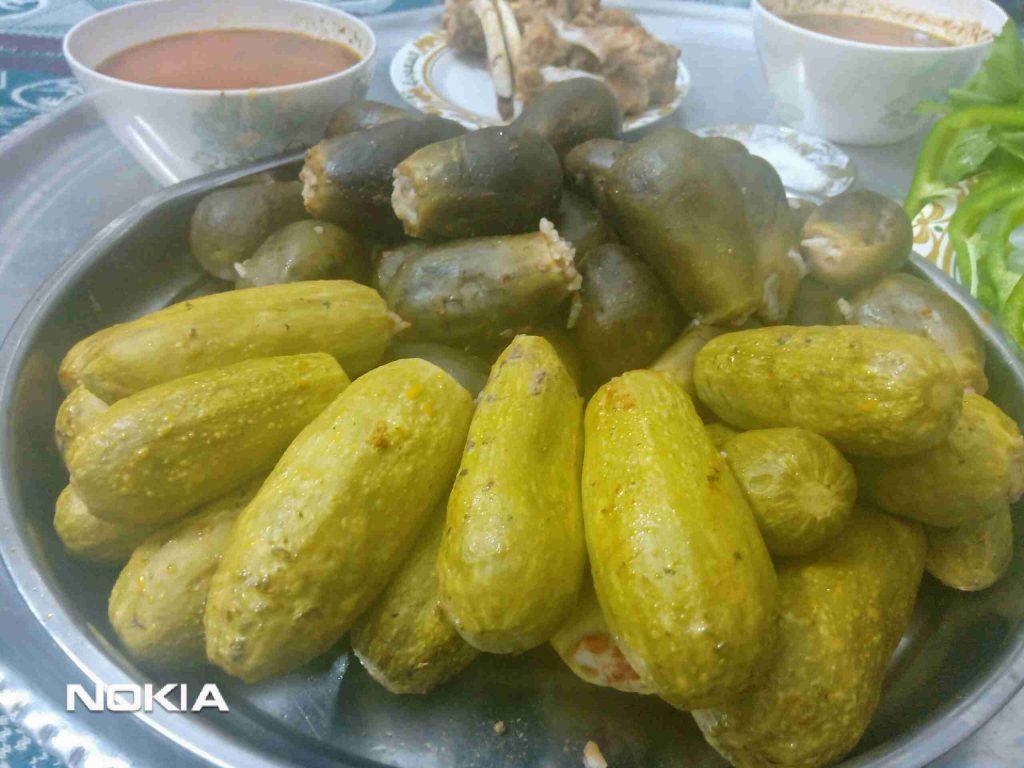 يسعد اوقاتكم اكيد طبخة المحاشي معروفة للكل ولكن كل شخص الو بصمتو بيها اول شي بنحفر الكوسا والباذنجان وبغسلن بمي وبصفيهن منيح ويقطع البندورة وبحط إلها ملح وبمرسها مع الملح وبتركها لحتا احضر الحسوة بغسل الرز منيح بمي سخنة وبصفيه ويضيف عليه اللحمة وملعقة السمنة والملح والبهار وبعصر عليها كاسة من مئة البندورة وبخلطهن منيح وبحشي الخضرة أنا بحط كم عظمة بسفل الطنجرة وبصف المحاسي بيها وبس تخلص الكمية بحط شي ثلاث كاسات مي سخنة وبضيفها المحاسي وبحطها عالنار تغلي لحتا اصفي البندورة واحطها بطنجرة وبس تغلي بضيفها المحاسي وبضيف الثوم المهروس وبغطيها