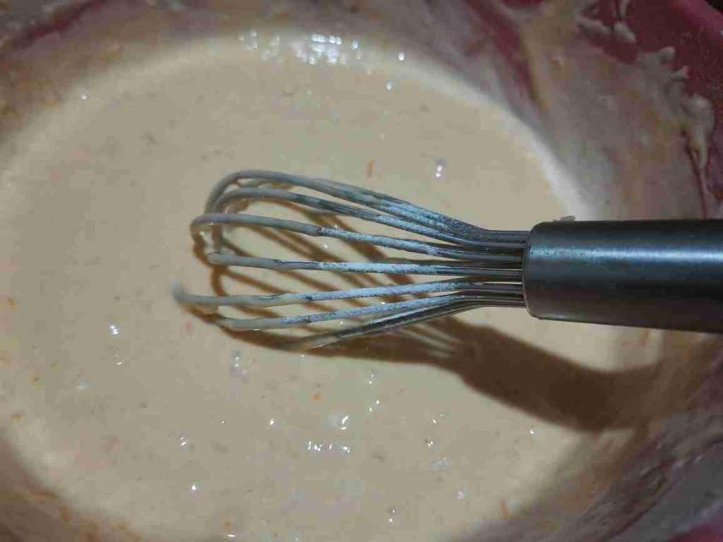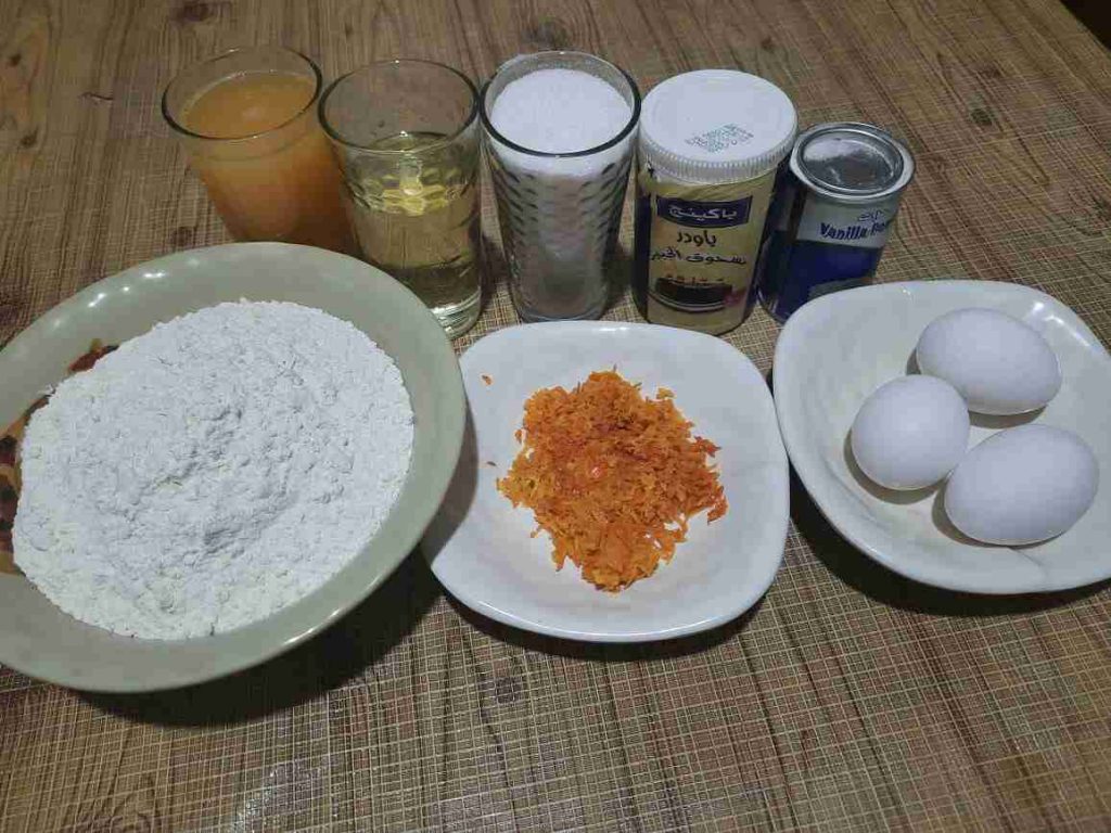 اول شي بنحضر جميع المواد لسهولة العمل نضع البيض السكر والزيت والفانيلا في وعاء عميق ونخفقه جيدا والبيض طبعا بدرجة حرارة الغرفه وبضيفله عصير وبرش البرتقال والخل ورشة الملح وبخفقه جيدا وببلش اضيف الطحين المنخل مع البكنج باودر بالتدريج مع الخفق المستمر حتى يتجانس الخليط انا هون طلع معي الخليط جامد شوي ضفت شوية عصير من عصير البرتقال دهنت القالب بالطحينين ورشيته بالسمسم المحمص ونزلت الخليط بالقالب وضعته بالفرن المحمى مسبقا على درجه 180م