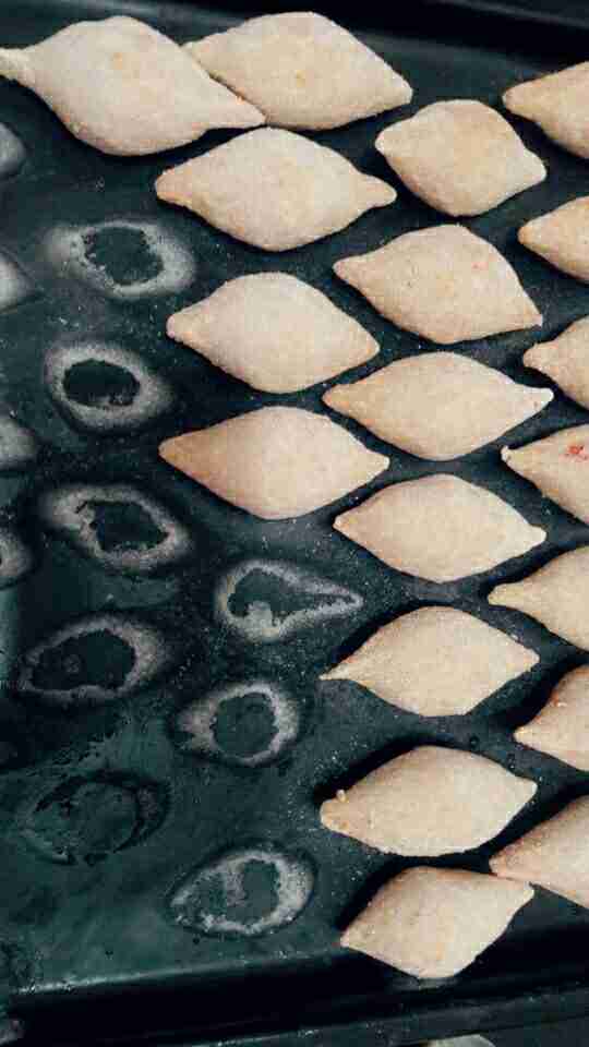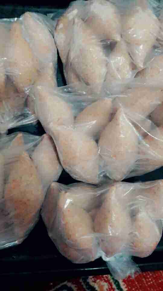 وبعد مانخلص كل الكمية منفردها بصواني ويكون بين كل حبة والتانية مجال يعني مانلزقهم مع بعض ونغطيهم بالنايلون ونركهم بالمجمد ليجمدو وبعدها منحطهم بأكياس التفريز ومنفرغهم من الهواء ومنسكر الكيس كتير منيح ومنحطهم بالمجمد