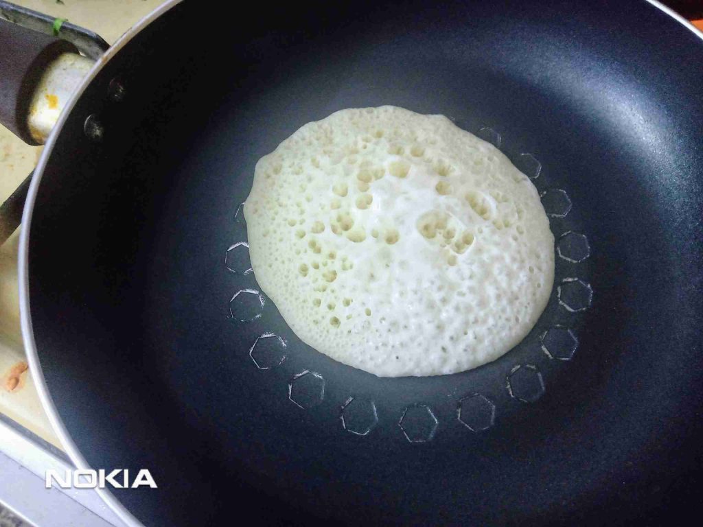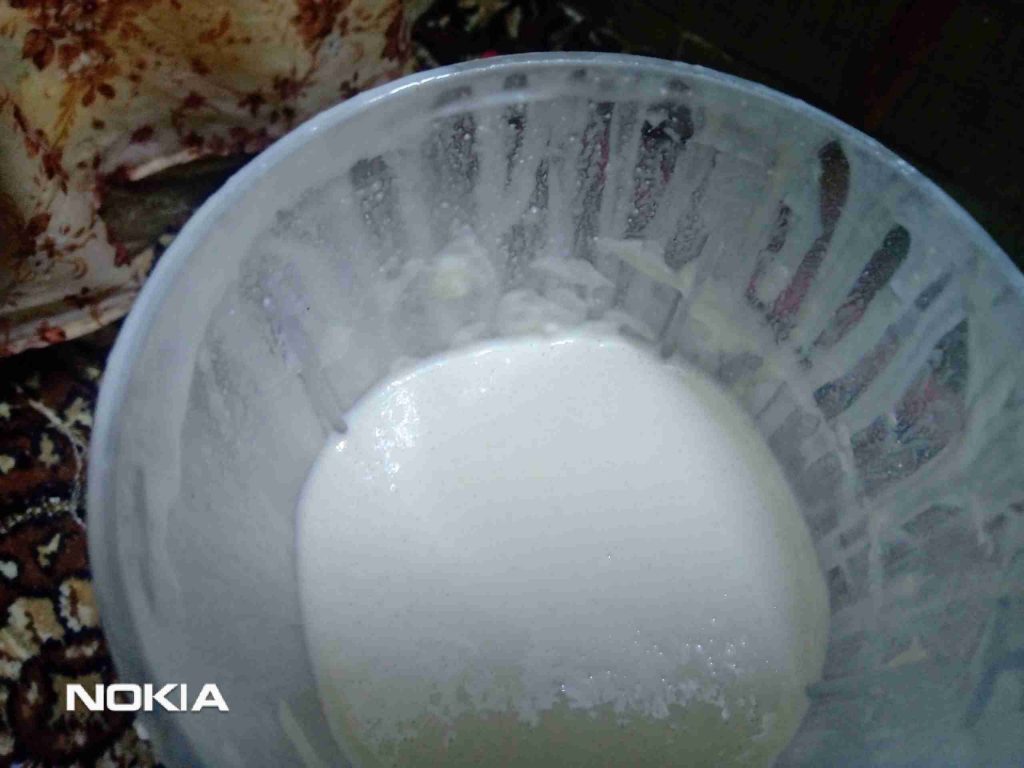 قوام العجينة لازم يكون رخو غير ثقيل حتى نحصل على الحواف البيضا و الفقاعات الكثيفة