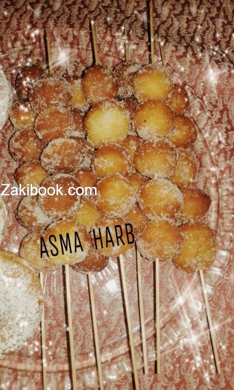 بعدين ع زيت معتدل السخونة والنار اقل من وسط انا غلفتها بشوكوﻻتة والدوائر يلي بالنص حطيتهم بسياخ الخشب بعد القلي والباقي غمرتهم بالسكر .