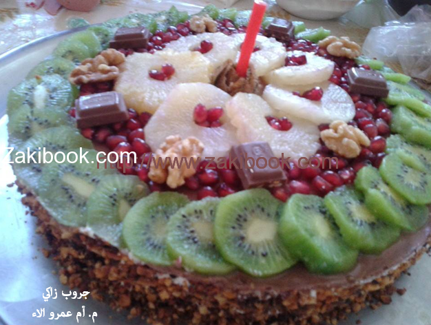 وتوضع في الثلاجة وتزين بالفواكه كما بالصورة.