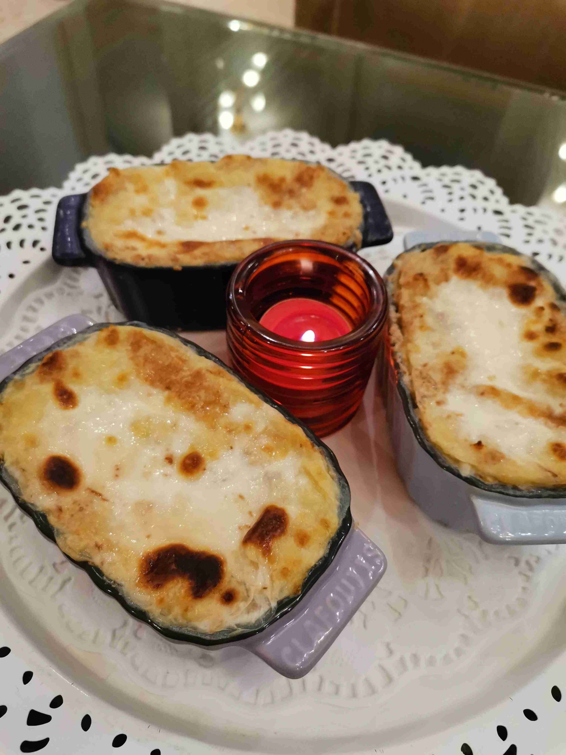 نضعها بالفرن الحامي مسبقا على درجة حرارة ١٨٠ لمدة ربع ساعه فقط ليحمر الوجه