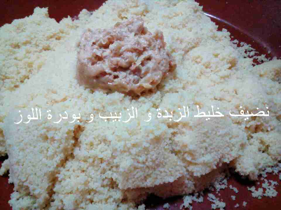 بالنسبة لكميات الزبيب و الزبدة و بودرة اللوز تزيد كلما زدنا الكسكس.