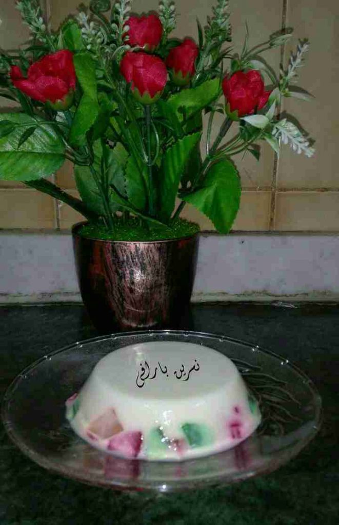 - جيلاتين ٣٠ غ =٣ملاعق كبيرة بدون نكهة ولون