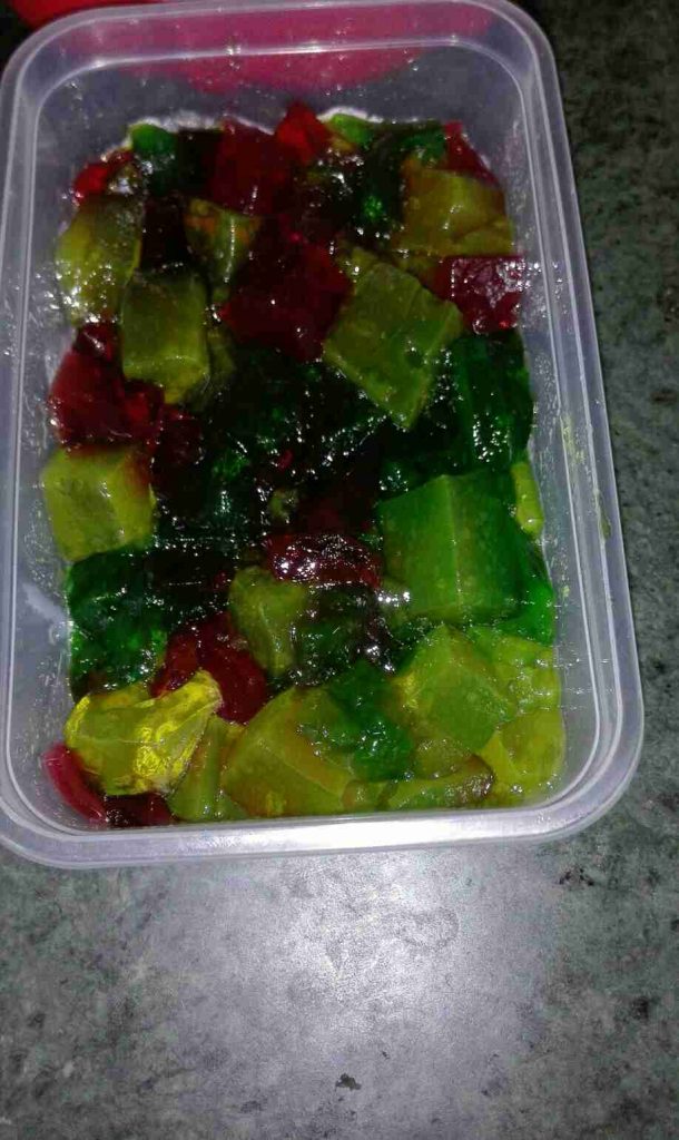 - ٣باكيتات جيلي نكهات مختلفة فراولة او كرز ليمون وكيوي اوتفاح