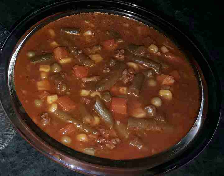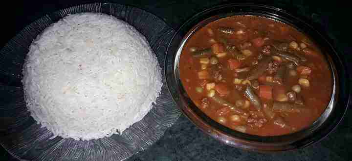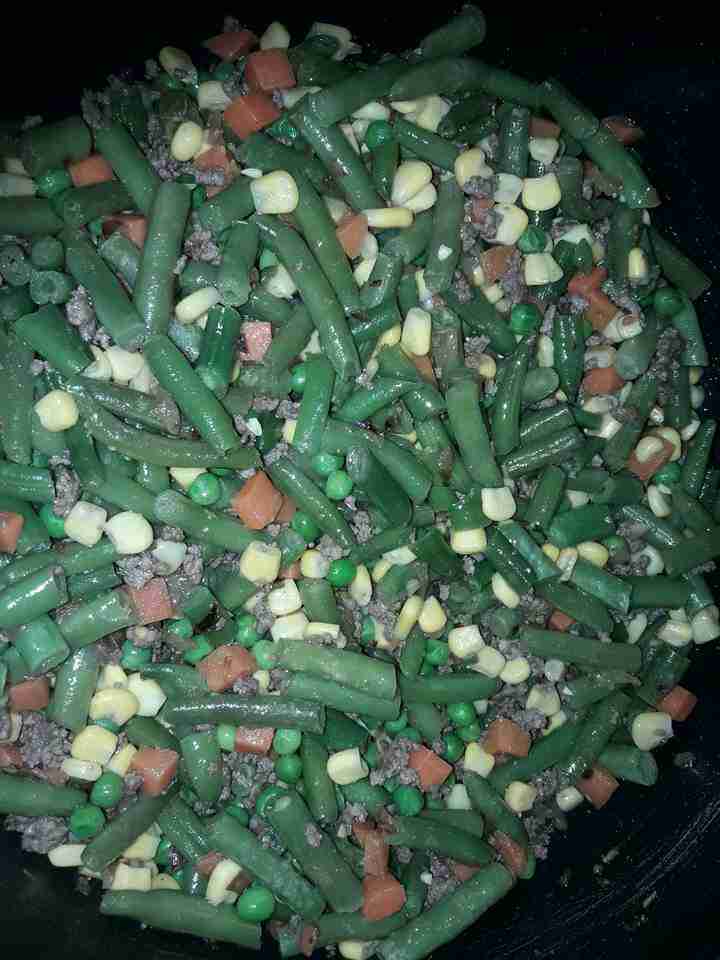 نصف كيلو كوسا مغسولة ومقطعة وحبتين جزر مغسول ومقشر ومقطع وعلبة ذرة نغسلها ونصفيها وثم نضع طنجرة ع النار ونضع ملعقتين سمنة وبصلة مفرومة ناعم لتدبل شوي نضيف اللحم المفروم ونقلبهم لتستوي شوي اللحمة نضيف الجزر والكوسا والذرة الصفرا ونقلبهم ونغطيهم ونتركهم ع نار متوسطة ليستو تقريبا نضيف 3 كاسات كبيرة ماء و3 ملاعق كبيرة معجون طماطم وفلفل اسود وملح وبهارات و رشة قرفة وحبتين هيل ونحركهم ونغطيهم ونتركهم بعد 10 دقائق نهرس راس ثوم ونضيفه عليهم ونتركهم ع نار هادئة لتعقد المرقة ويستو ويقدم إلى جانبه الأرز والف صحة وهنا