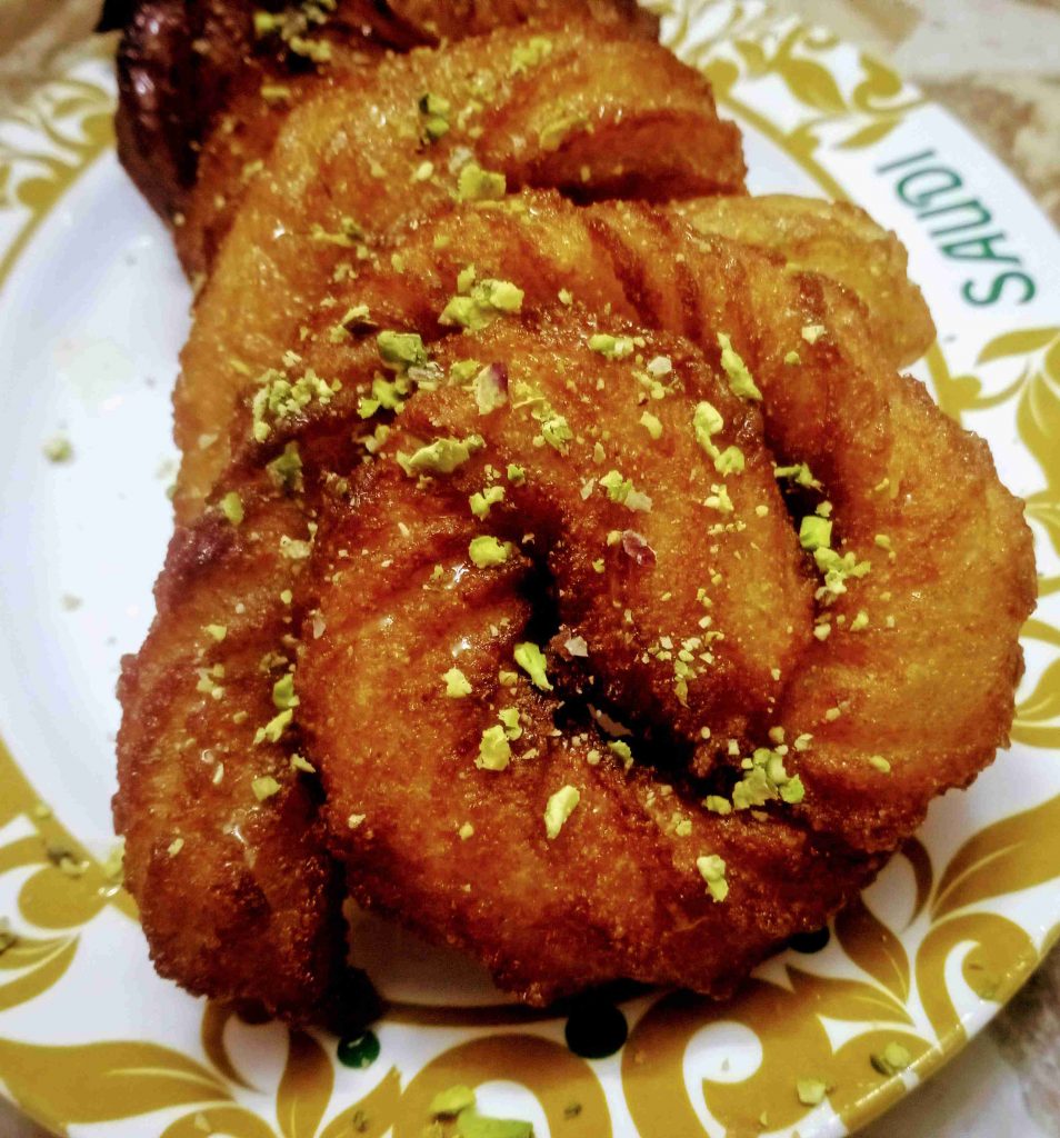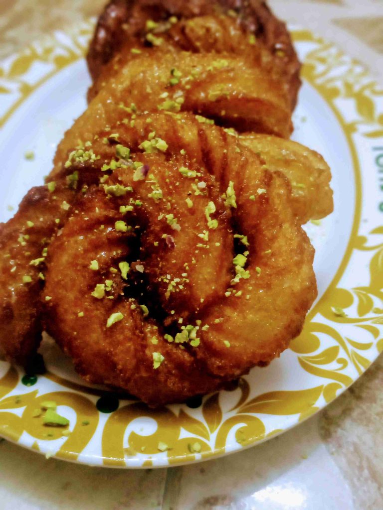 كيفكن شيفات زاكي العزيزات اليوم رح نعمل مشبك مشهور في حلب ومن أشهر الحلويات كان وأكثرها طلبا في شهر رمضان والطريقة يلي رح نعملها أكثر محلات الحلويات كانت تعملها ويلي كانو يعملو الخميرة من نفس العجينة يلي بيشتغلو بيها وهي التخمير الذاتي اول خطوة بنحط بجاط كاستين سميد وبنجيب مي سخنة وبنصير نزل شوي شوي لحتا يأخذها السميد كفايتو من المي وتتشكل عجينة وبنغطيها وبنتركها 24 أو أكثر لحتا يختمر السميد بنجيب كاستين سميد وبنصير نضيف عليهن مي سخنة وبنخلط منيح لحتا تتشكل عجينة طرية شوي وبنغطيها وبنتركها ترتاح عشر دقائق وبعدين بنصير نأخذ من الخميرة يليةعملناها من قبل بيوم ثلاث معالق وبنضيف وبنحطها بصحن وبناخذ قدر كأس من السميد يلي خلطناه وبنخلطهن مع بعض وإذا احتاجت مي بنضيفلو رشة وبنحرك وبنعبيه بكيس حلواني وبنشكلن بزيت حامي لحتا يستوي وبنطالعن وبنحطن بالقطر مدة دقيقة وبنطالعن وبنحطن بصحن