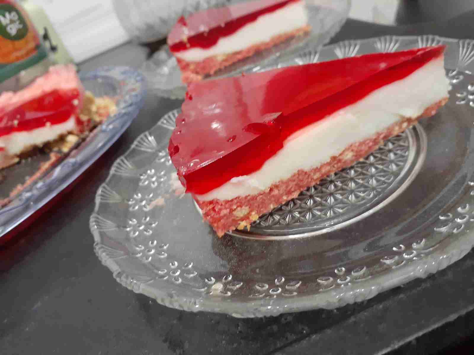بعد ذلك نخرجة ونسكب الجلي فوقه ببطئ وندخله الثلاجه نصف ساعة اخري بعدها يكون جاهز للتقديم…. بالهناء والشفاء….