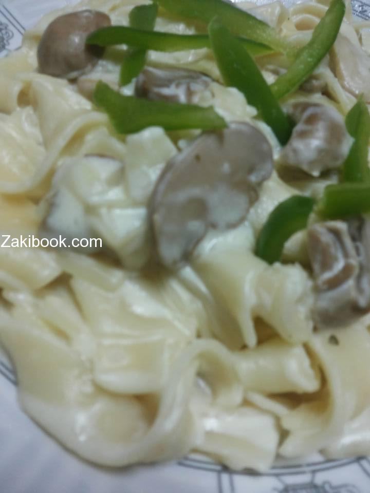 يضاف الفطر للمعكرونة وأخيرا نضيف الخليط الكريمي