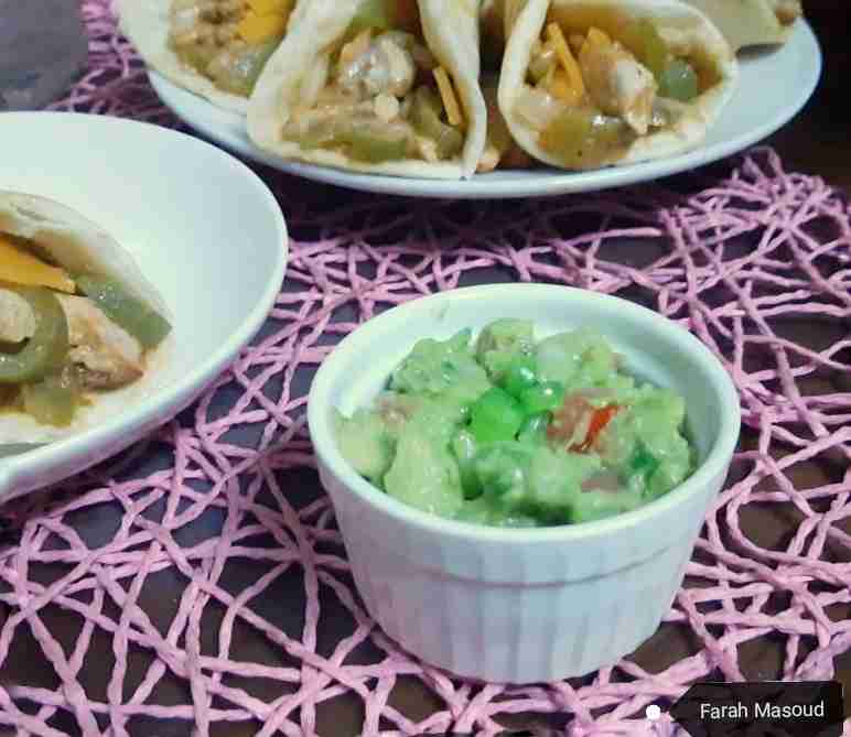 - حبة كبيرة أفوكادو مهروس وعليه عصرة ليمون