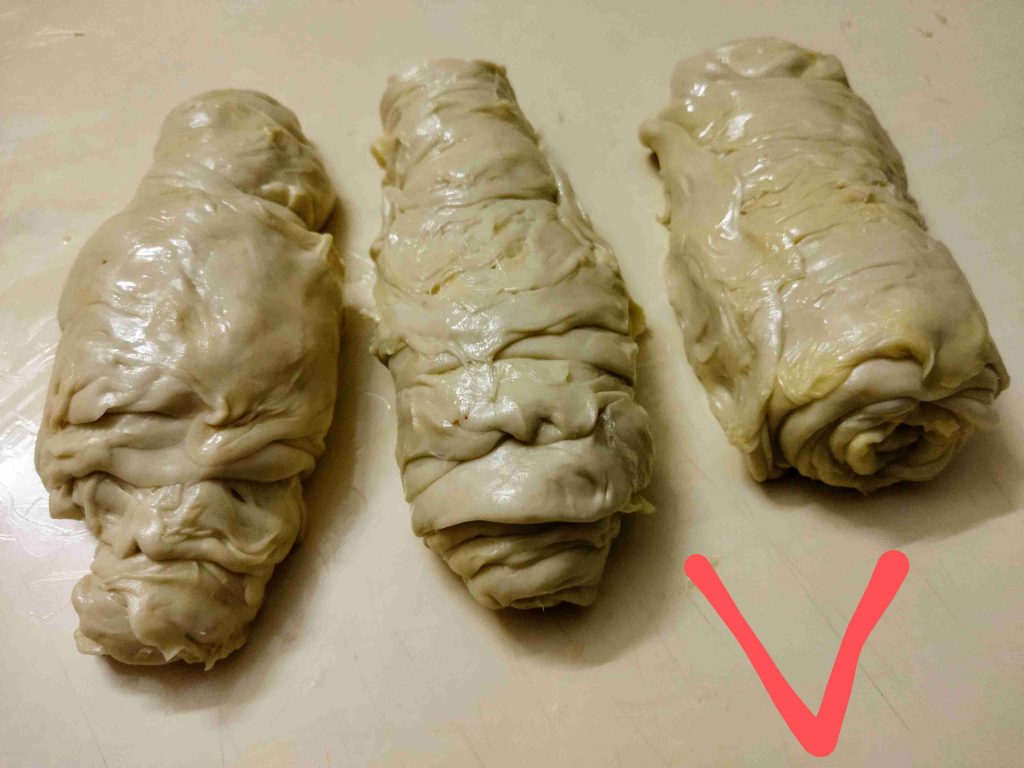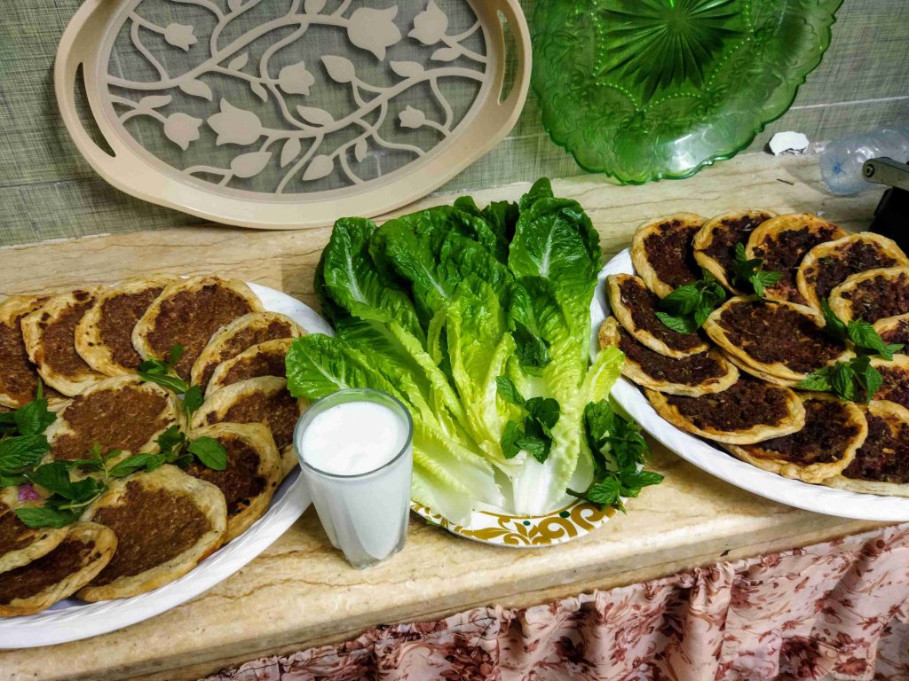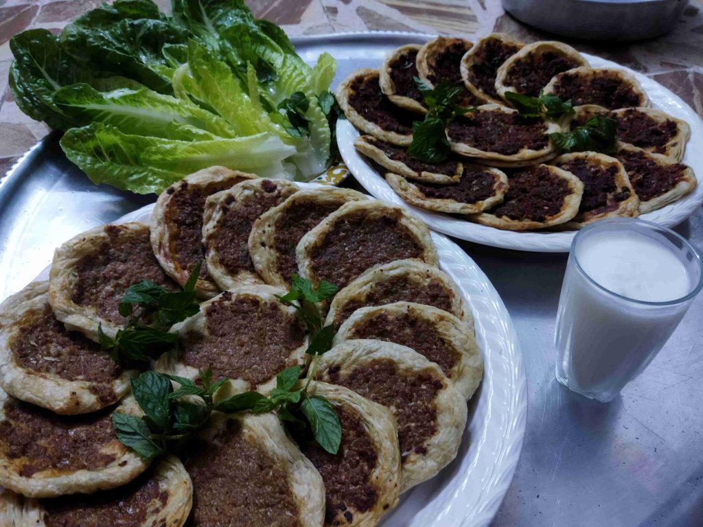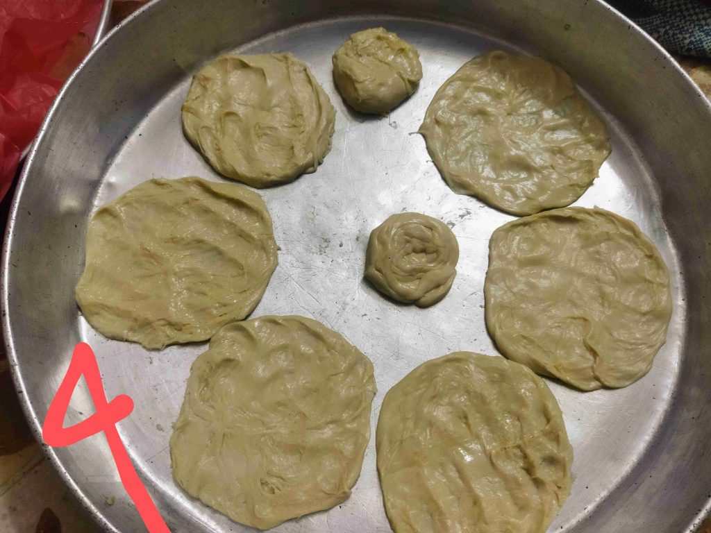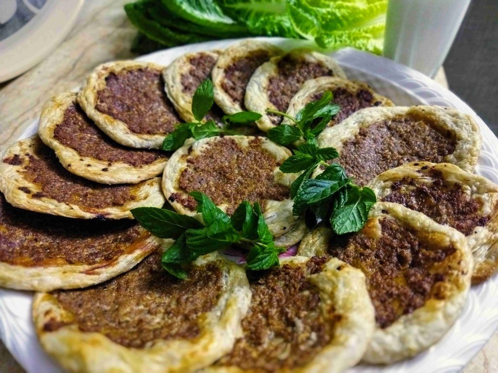 يسعد اوقاتكم اليوم رح نعمل أكلة حلبية تقليدية تقدم بالمناسبات والافراح ورح نعملها بالدجاج واللحم وان شالله تكون الطريقة سهلة اول مرحلة بنزل اربع اكواب طحين وبنضيف عليهن ملعقة صغيرة ملح وربع كوب زيت وربع ملعقة كربونات الصوديوم وبنضيف الماء وبنعجن اخذت معي العجينة كاس ونص حسب استيعاب العجين لحتا تصير عجينة طرية مابتلزق باليد ونتركها ترتاح نص ساعة اهم شي بنجاح التوريق للعجينة انو انريحها بكل مرحلة بعد ماترتاح العجينة بنلفها على شكل رول ونتركها ترتاح نص ساعة وبعدين بنقطعها ثلاث قطع على شكل دائري ونتركها ترتاح نص ساعة بواسطة شوبك بنرقها على شكل دائري وبندهن وجه الدائرة بالزبدة والسمنة يلي خلطناهن مع بعض حتا تورق العجينة بكمية وفيرة ونتركها ترتاح نص ساعة حسب ماتكون ارتاحت العجينة لانو إذا ماارتاحت العجينة مابتساعدنا بالمد بنبلش نمسك بأيد وبنشد برياحة وبالايد الثانية بنلف العجينة مثل طريقة توريق الشعبيات بالسمنة بنلفهن على شكل رول وبنتركهن يرتاحو نص ساعة بنقطعها قطع حسب الرغبة وبنحطن بالطينية وبنمد بأيدينا أو بالشوبك على شكل دوائر وبنحشين بالحشوات يلي حضرناهن مسبقا خلطة اللحمة مكونة من اللحمة ثلاث حبات بندورة مفرومة ناعم ونص ملعقة ثوم مهروس وملعقة صغيرة ملح ونص ملعقة فلفل مطحون وملعقة كبيرة دبس فليفلة وملعقة كبيرة دبس رمان وبقدونس ونعناع مفرومين ناعم وبنضيفن عالحمة وبنحركن مع بعض وخلطة الدجاج بيلزمنا الدجاج المفروم ناعم بنضيف عليه بصلتين مفرومين ناعم ونص كأس دبس رمان وملعقة ملح صغيرة ونص ملعقة فلفل اسود مطحون وبنحلطهن مع بعض وبنتركهن مدة ساعة تتشرب التوابل وبنحط بمصفاية لحتا نصفي ألمي منن ونبلش ندهن كرات العجين بالحشوات وبندخلهن فرن حامي مسبقا على درجة ٦ ميتين لحتا تتحمر من الاسفل بنحطها على الشبك الوسط بالفرن وبنحمر الوجه وهيك صارو جاهزين ويتمنى تعجبكم وصحة وهنا