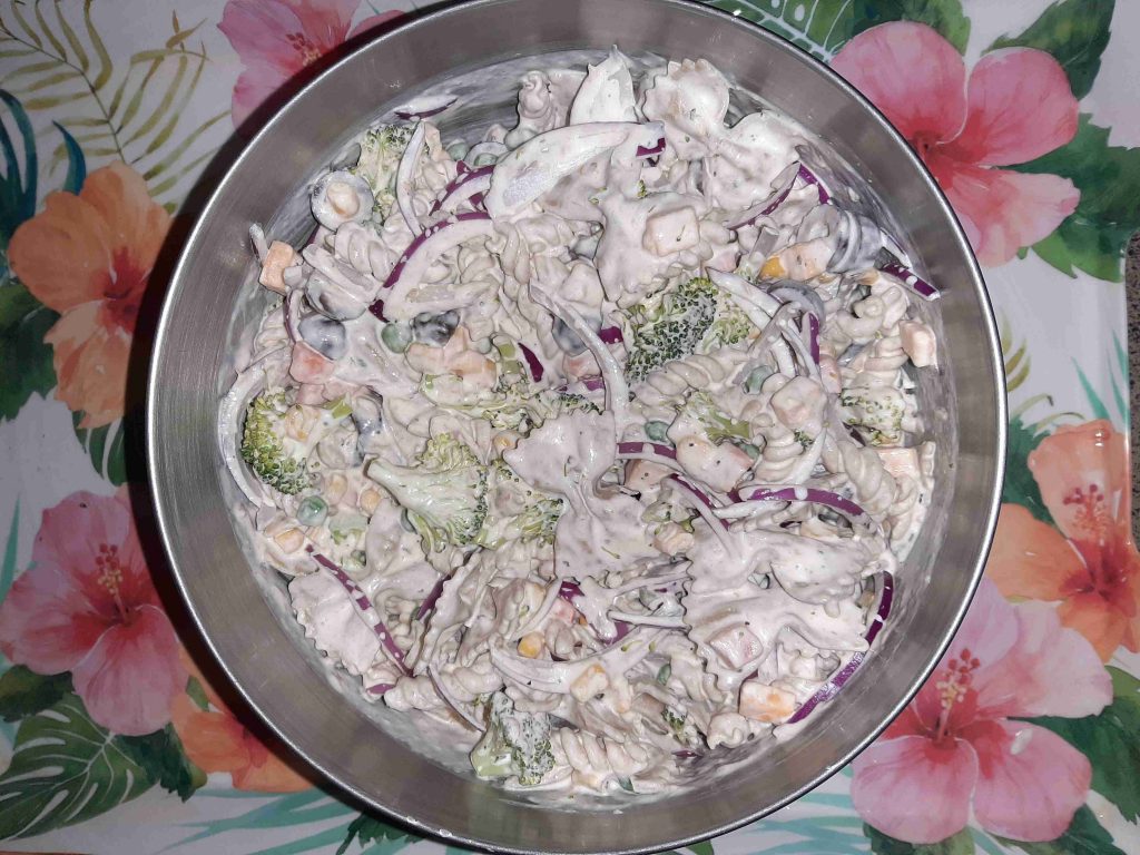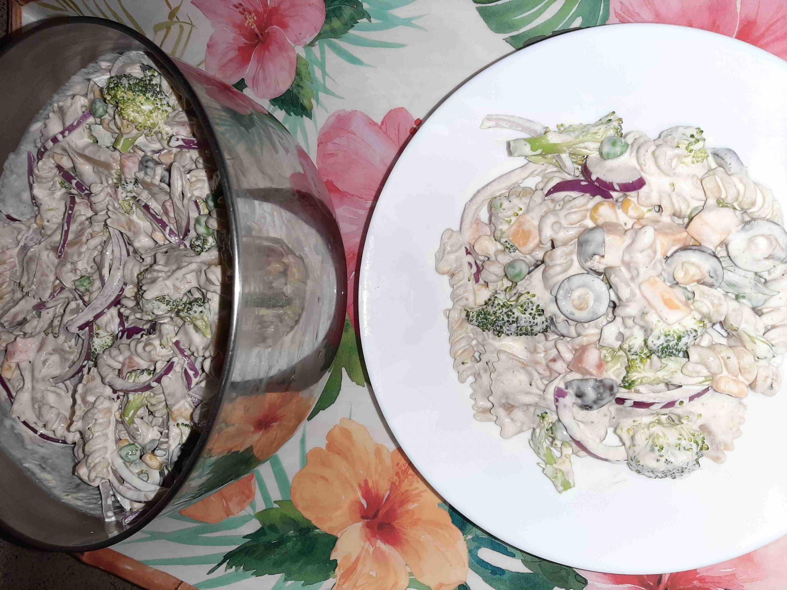 المقادير حسب الرغبه وحسب كميه المكرونه ونخلطهن مع بعض وتقدم باردة