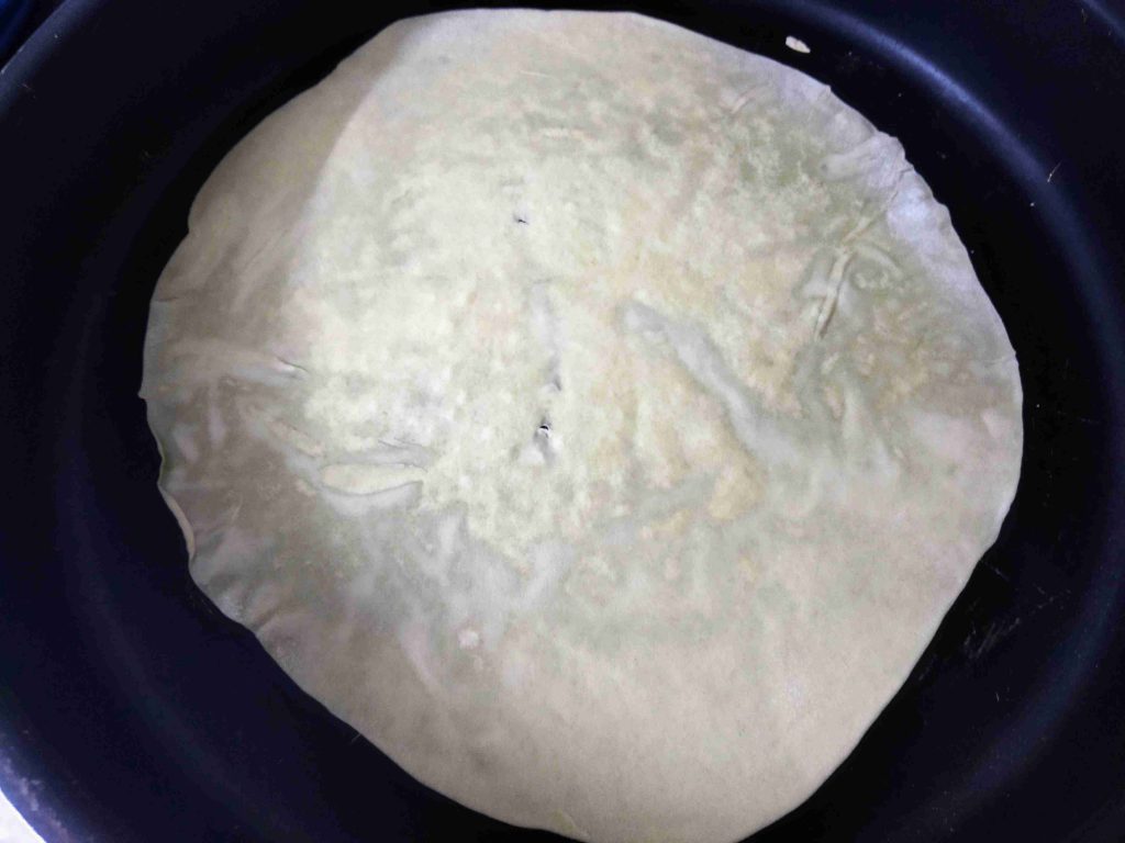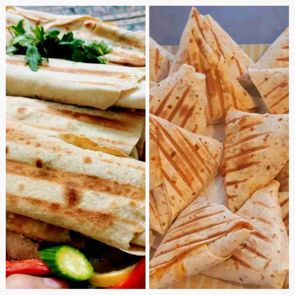 ترتاح بجو الشتاء ساعة وبس ترتاح بنقطعها كرات وبنتركها ترتاح لمدة عشر دقائق وعلى سطح العمل بنرش طحين وبنرق الكرات حجم وسط واذا حسيتو وانتو عم ترقو العجين عم يلزق رشوعليها رشة طحين الطحين بساعدنا بالرق لازم يكون الرغفان بسماكة رفيعة وبنحط الرغيف على بشكيرة خاصة للمطبخ وبنكمل لحتا نخلص كل الكمية وبنتركهن يرتاح عشر دقائق ونبلش نخبزهن على صاج أو مقلاة تيفال غير لاصقة وبنحط الارغفة فوق بعض وبنغطيهن ونبلش نلف السندويشات بتحبو مثلثات بتقصو الرغيف بنص وبنحط الحشوة عالطرف وبنلفها مثلثات وإذا بتحبوها سندويشة عادية بنحط الحشوة عالرغيف وبنلفها مثل مابنلف الشاورما وبنحط السندويشات بالسخان الكهربائي للخبز وهيك صارو جاهزين وان شالله صحة وهنا