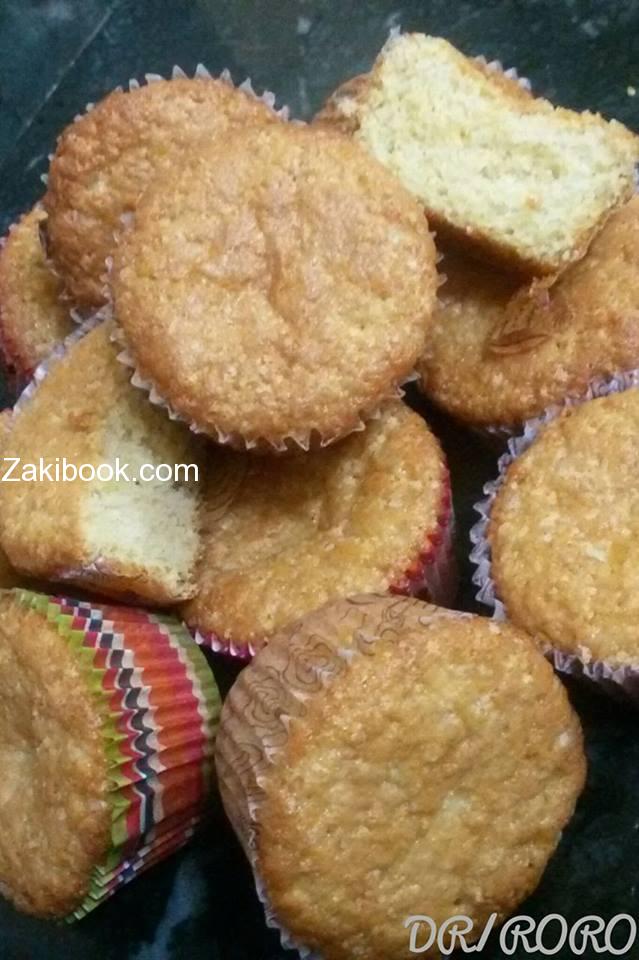 بعدين نضيف الدقيق والبيكنج بودر ونقلب كويس ونصب الخليط فقوالب الكب كيك