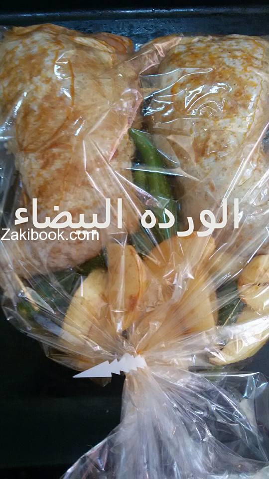 وحشيت كمية بسيطة تحت الجلد واستخدمت عود الأسنان في شد أطراف الجلد ووضعت الافخاد في كيس حراري مع بطاطا متبلة وفلفل وبالصحة والعافية والخطوات بالصور ولاتنسوني من صالح دعائكم