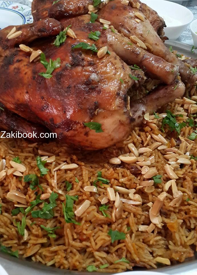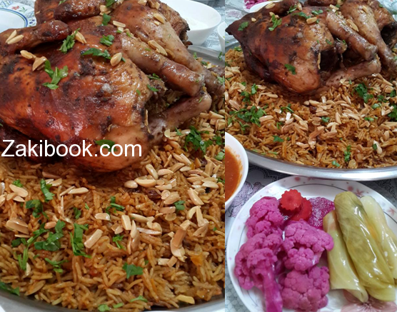 الدجاج المحمر بطريقة القناني مع ارز الكبسه