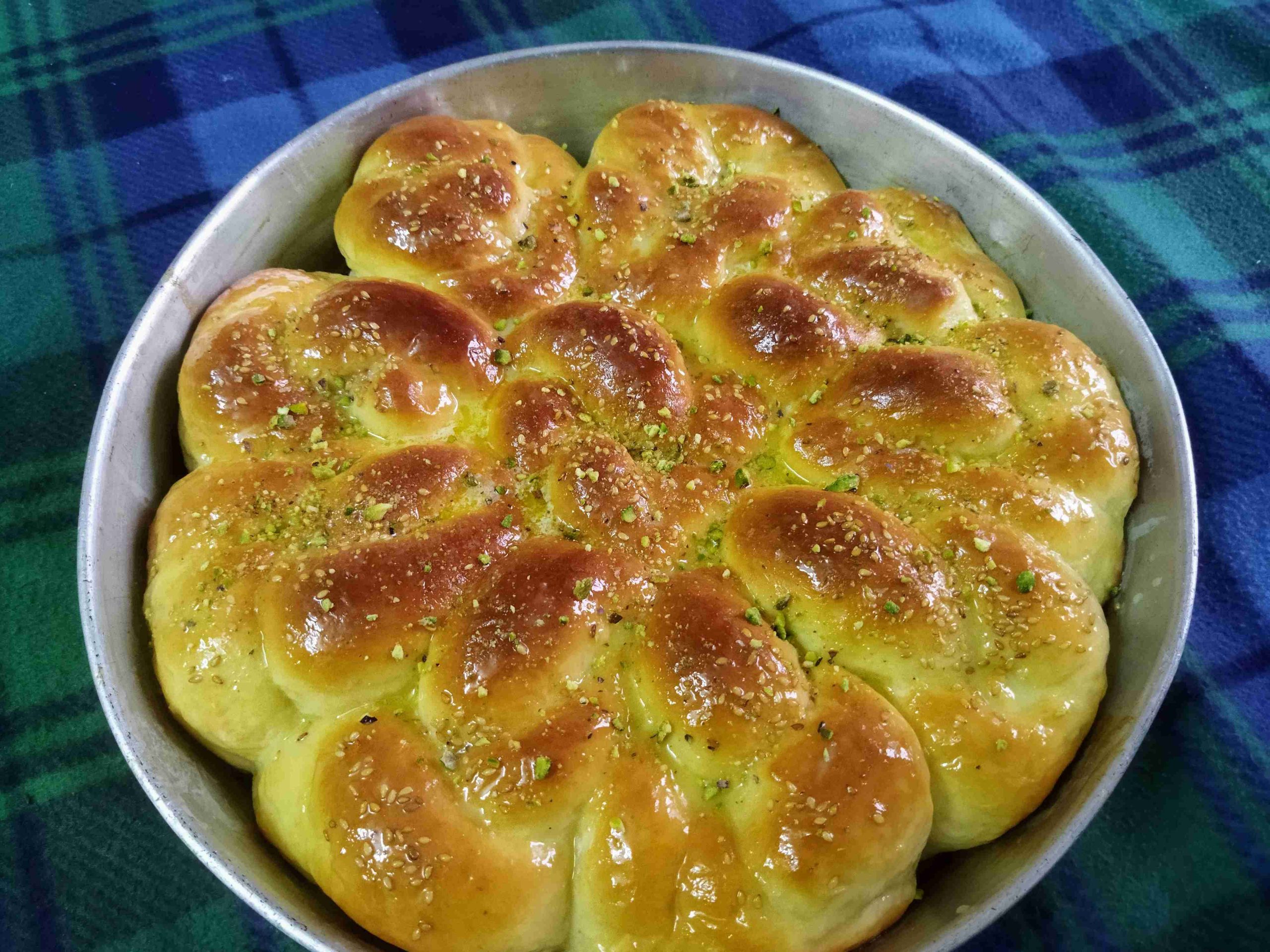 اول مرحلة بنضيف البيضة بجاط وبنضيف عليها ملعقتين حليب مكثف والحليب الدافئ والخميرة وبنخلط لحتا نتأكد من ذوبان الخميرة بنضيف كوب ونص طحين ورشة ملح والمحلب وبنخلط بالبداية بواسطة ملعقة وبنكمل عجنا باليد وبضيف الطحين بالتدريج لحتا نحصل على عجينة متماسكة بنضيف الذبدة وبنعجن وبنحصل على عجينة طرية ومابتلزق بنغطيها وبنتركها تتخمر ساعة وبنقطعها كرات وبنرحع بنغطيها وبنتركها كمان ترتاح مدة عشرين دقيقة وبنشكلها انا شكلتها على شكل ظفيرة ودهنت الصينية بخليط ثلاث معالق حليب مكثف وملعقتين زبدة وتركت باقي الخليط لدهن وجه المعروك بعد مايستوي وبعد التشكيل تركتن يخمرو نص ساعة وبس تضاعف حجمن دخلتن على فرن حامي وحطيت مي بصينة ودخلتها الفرن من الاسفل البخار بيعطي الطراوة والهشاشة للمعروك